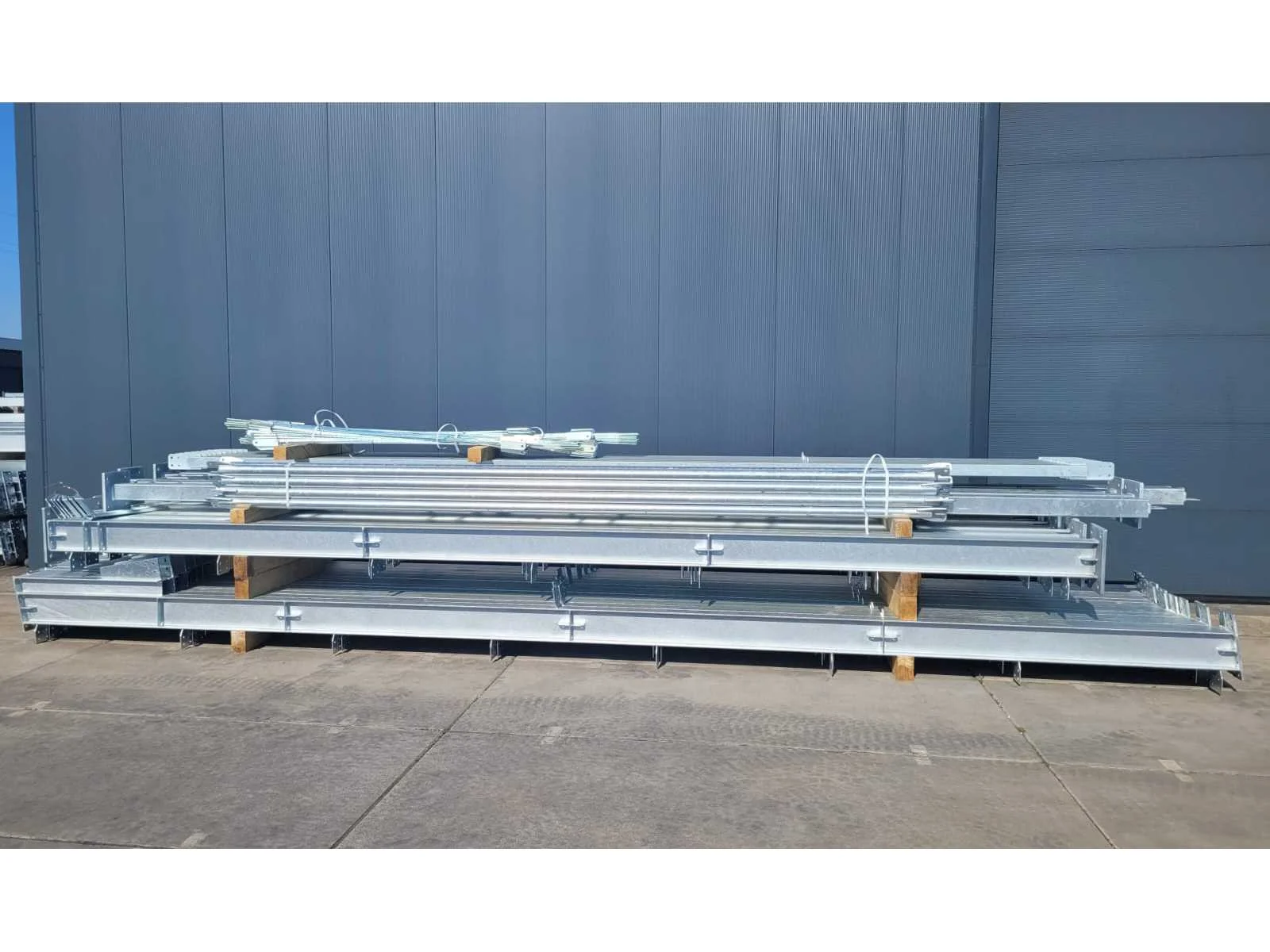 Ongebruikte; gegalvaniseerde staalconstructie; IPE 220; staanders en spanten; inclusief windverbanden Materiaal: Staal Totaal oppervlakte: 480m² Goot hoogte: 7000mm Totale afmeting L: 30000mm Totale afmeting Breedte: 16000mm