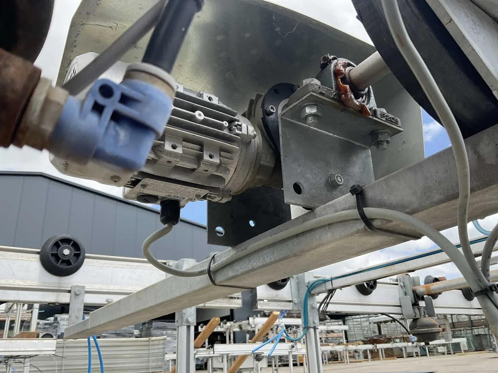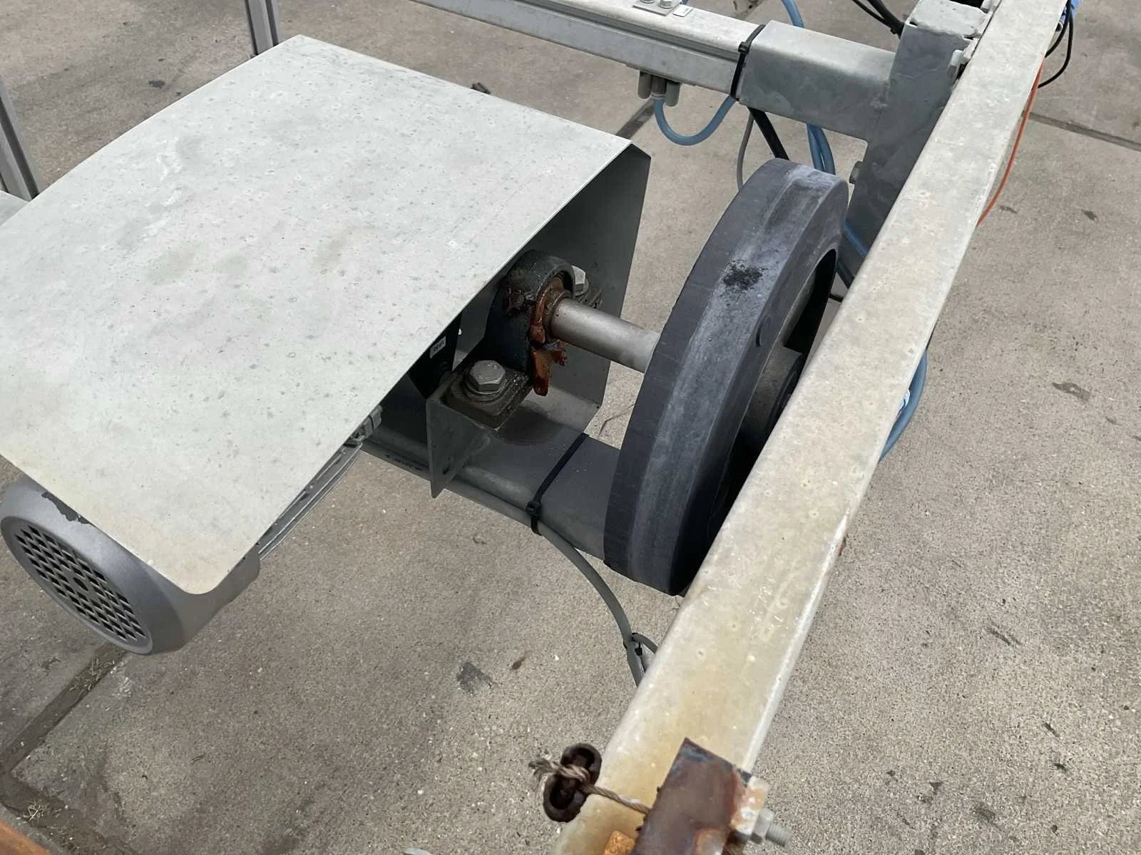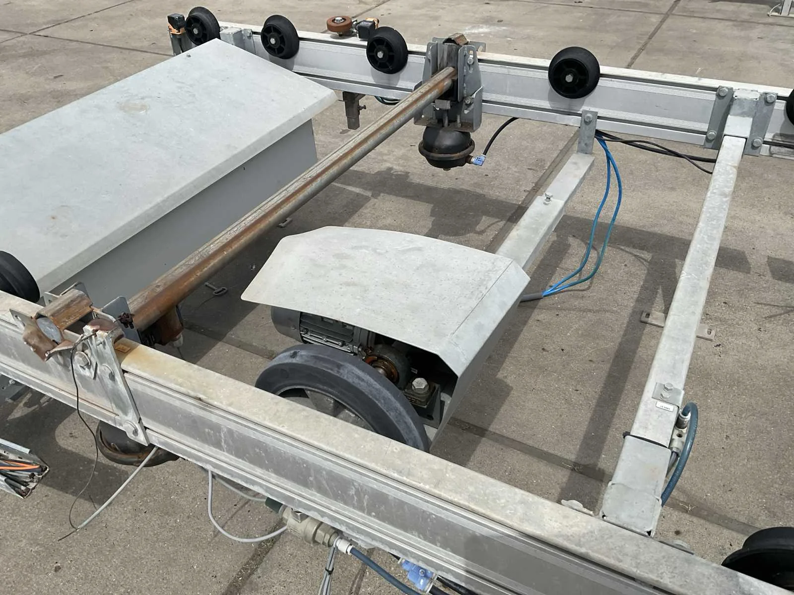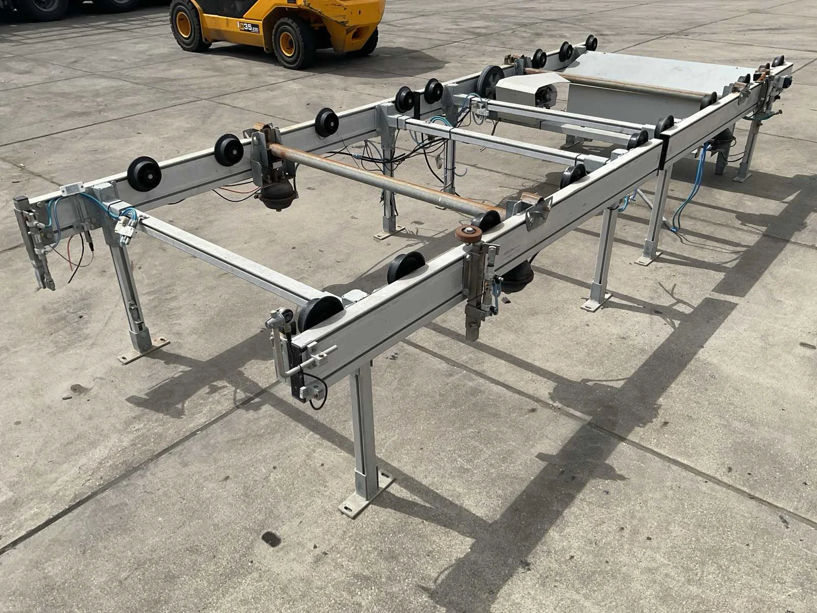 Voor tafel breedte 1250 mm; met stalen lucht balgen; en schakelkast met aansturing; Merk: Kg systems Totale afmeting L: 4220mm Totale afmeting Breedte: 1380mm Totale afmeting Hoogte: 740mm