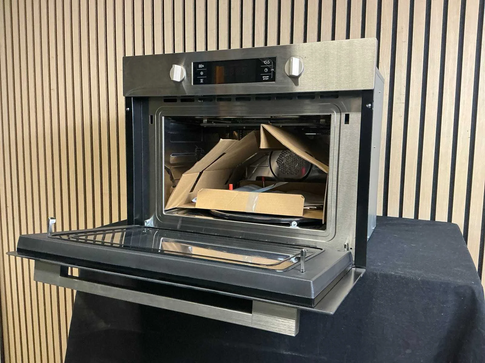 Betreft een ongebruikt showmodel met 2 jaar fabrieksgarantie op de werking van het product. Merk: Etna Model: CM244RVS Kleur: RVS Breedte: 60cm Hoogte: 45cm