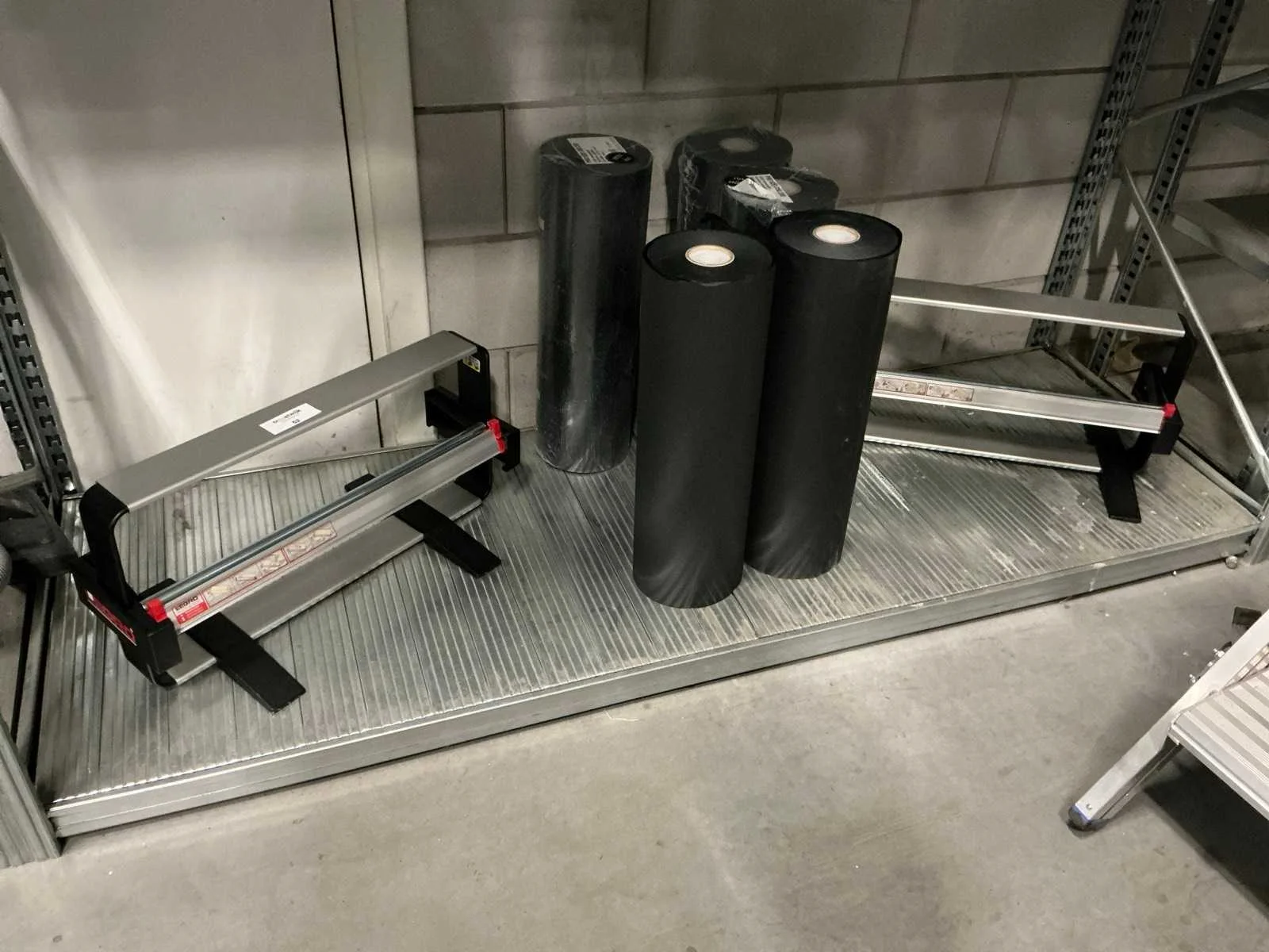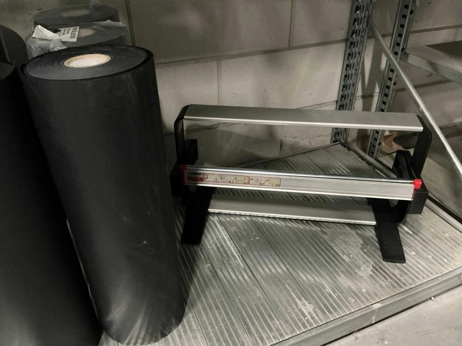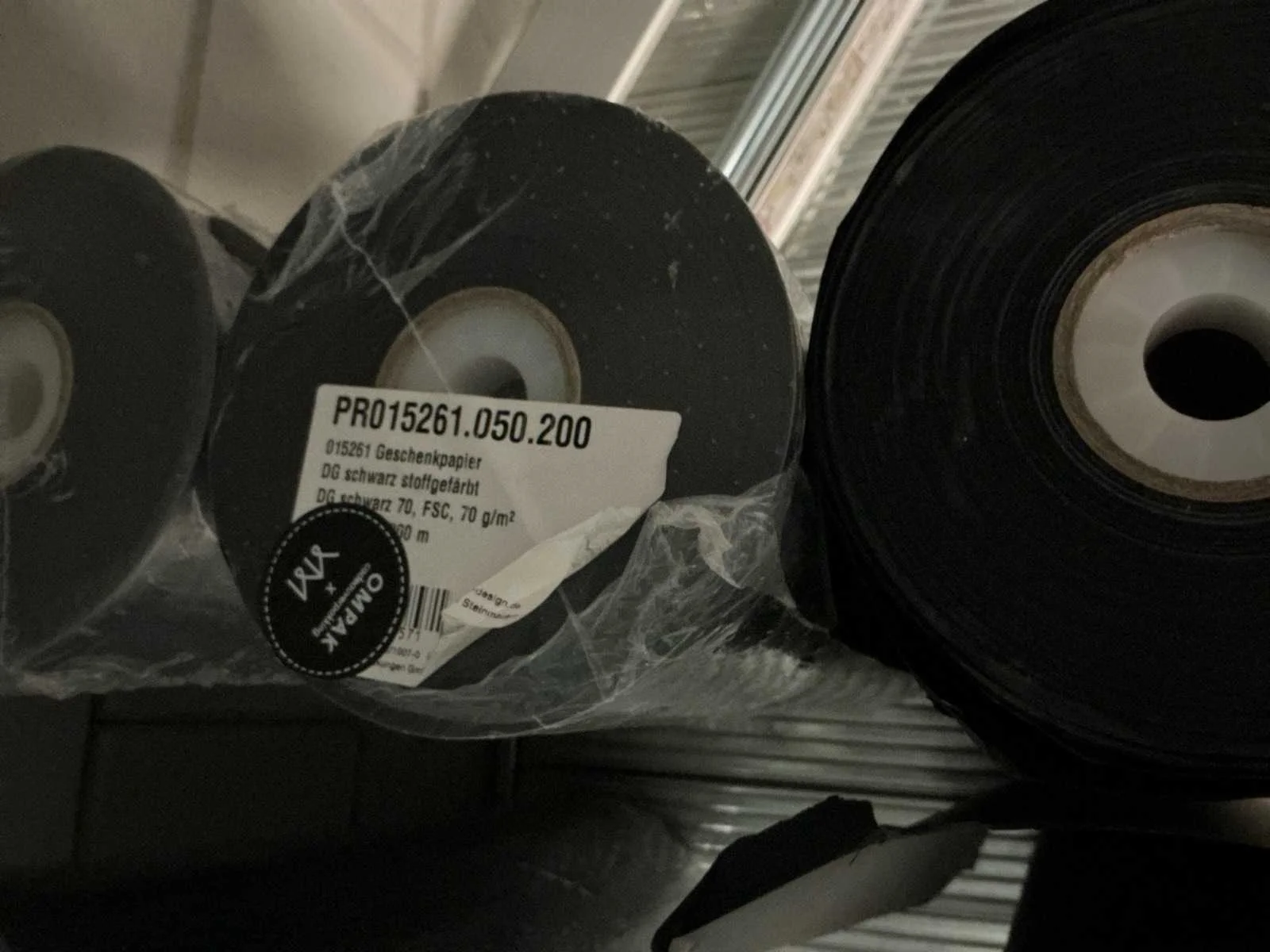 2 Legro papierrolhouders. 5 rollen inpakpapier.