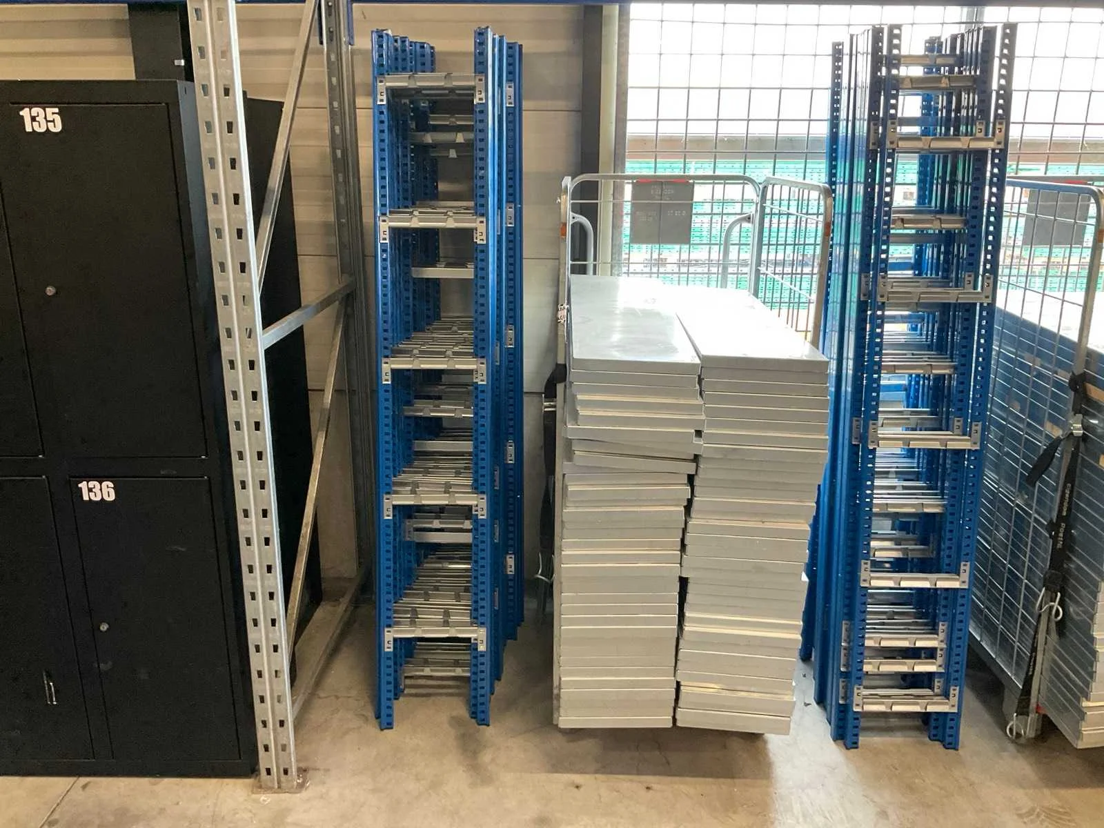 Bestaande uit 70 legborden ( 30 x 98 cm ) en 17 staanders ( 200 cm) . zonder rolkar