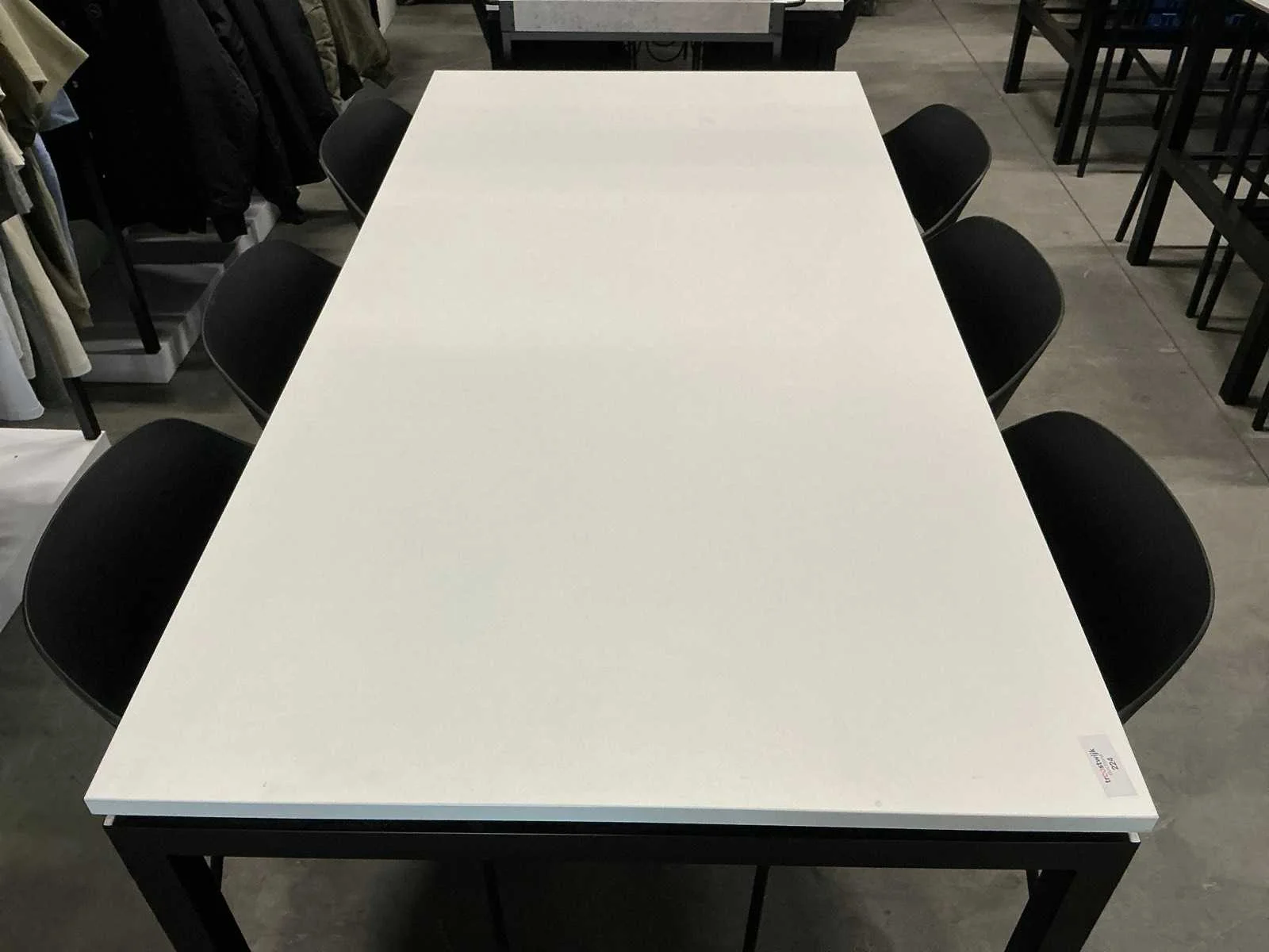 1 tafel. (Afmeting: L200xB100xH77cm.) 6 stoelen. (Zithoogte 44cm.)