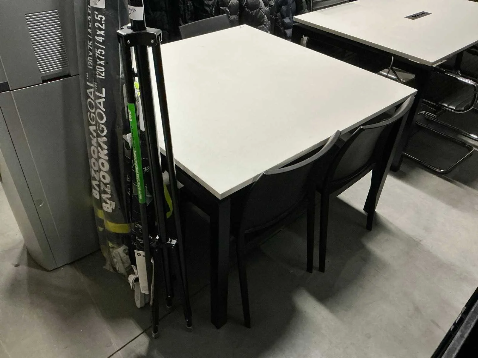 1 tafel, afmeting: L120xB120xH76cm. 4 stoelen, zithoogte : 45cm.