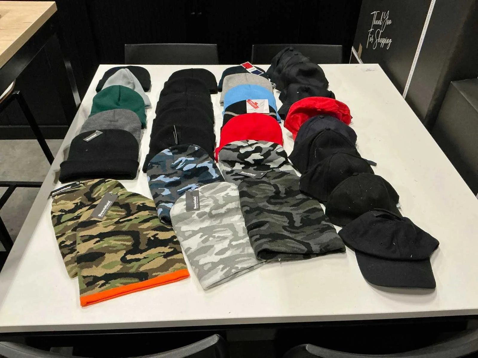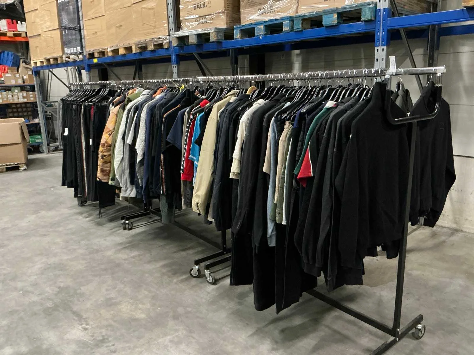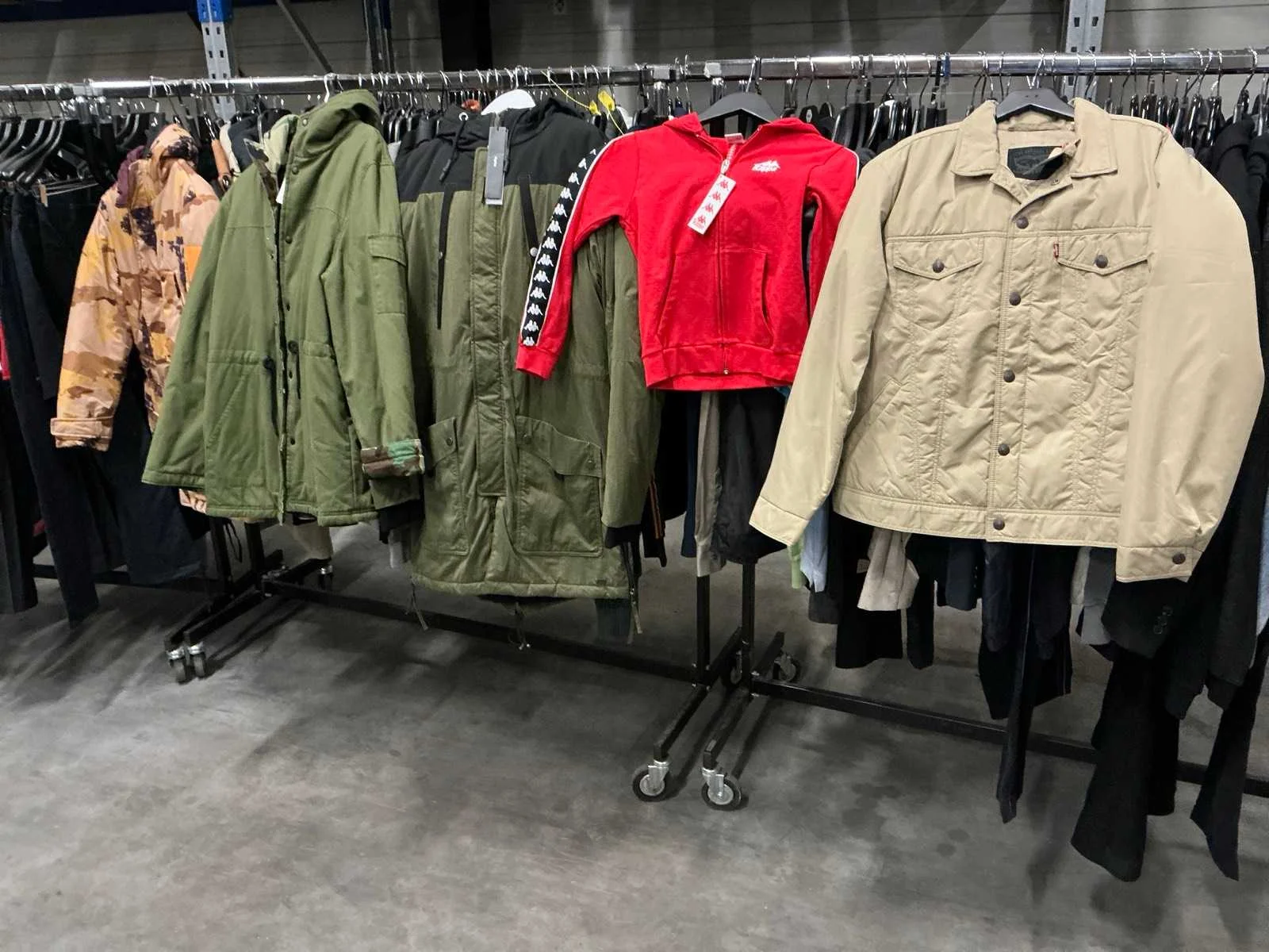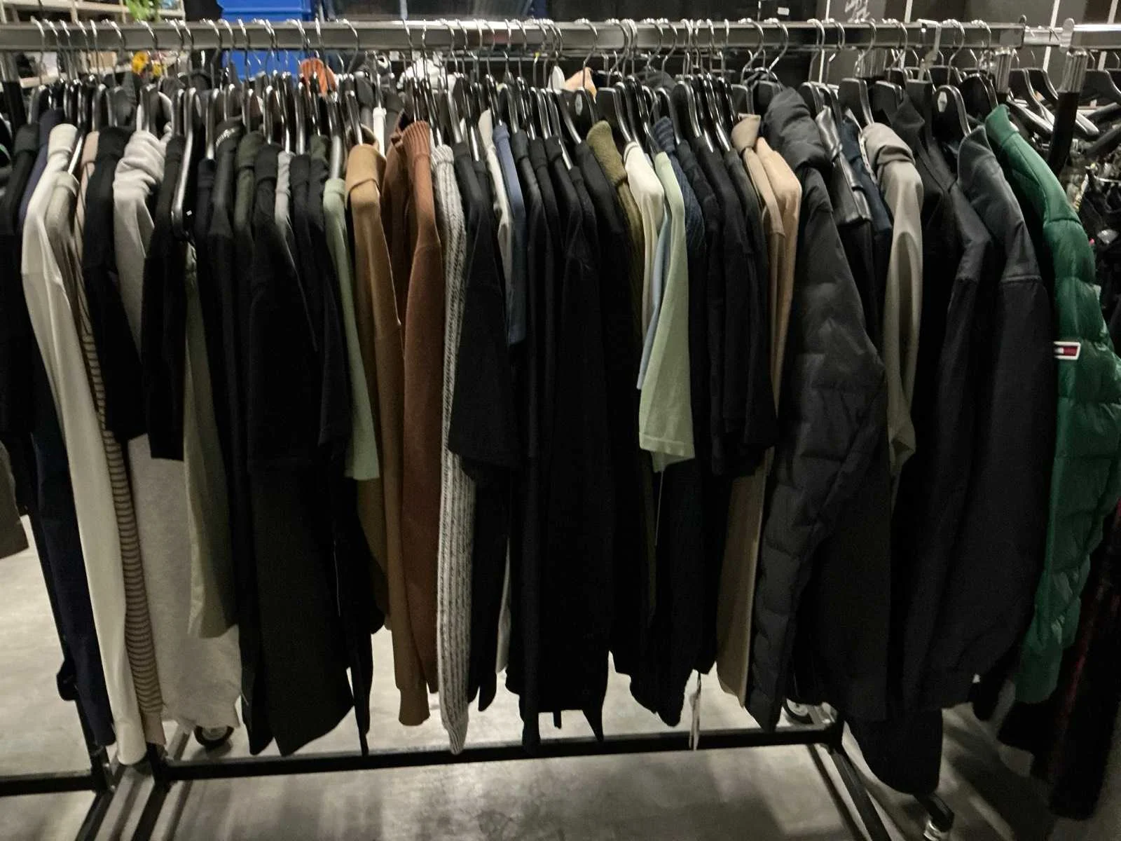 Diverse merken. 276 kledingstukken. 33 petten/mutsen. Zonder kledingrekken!