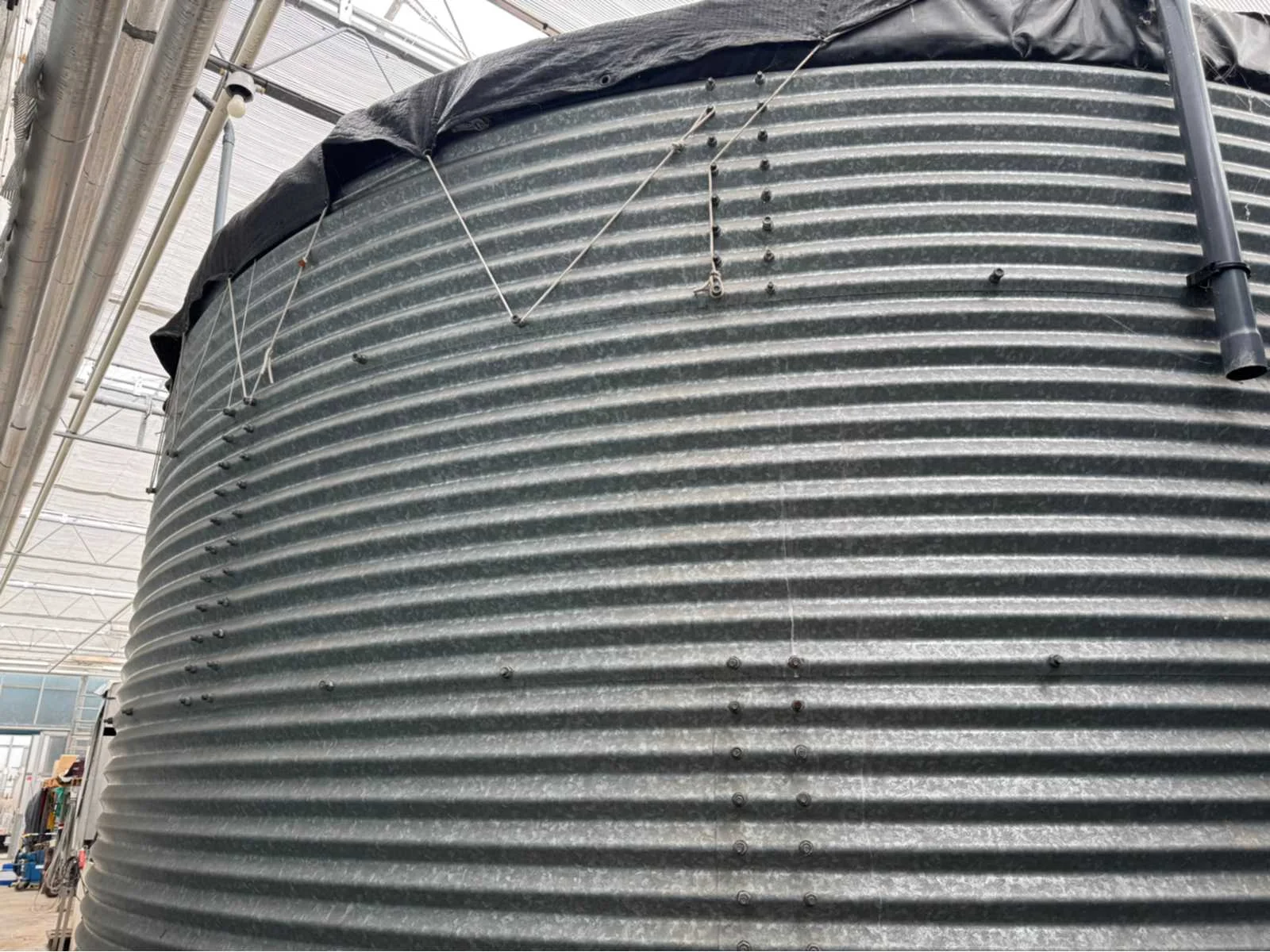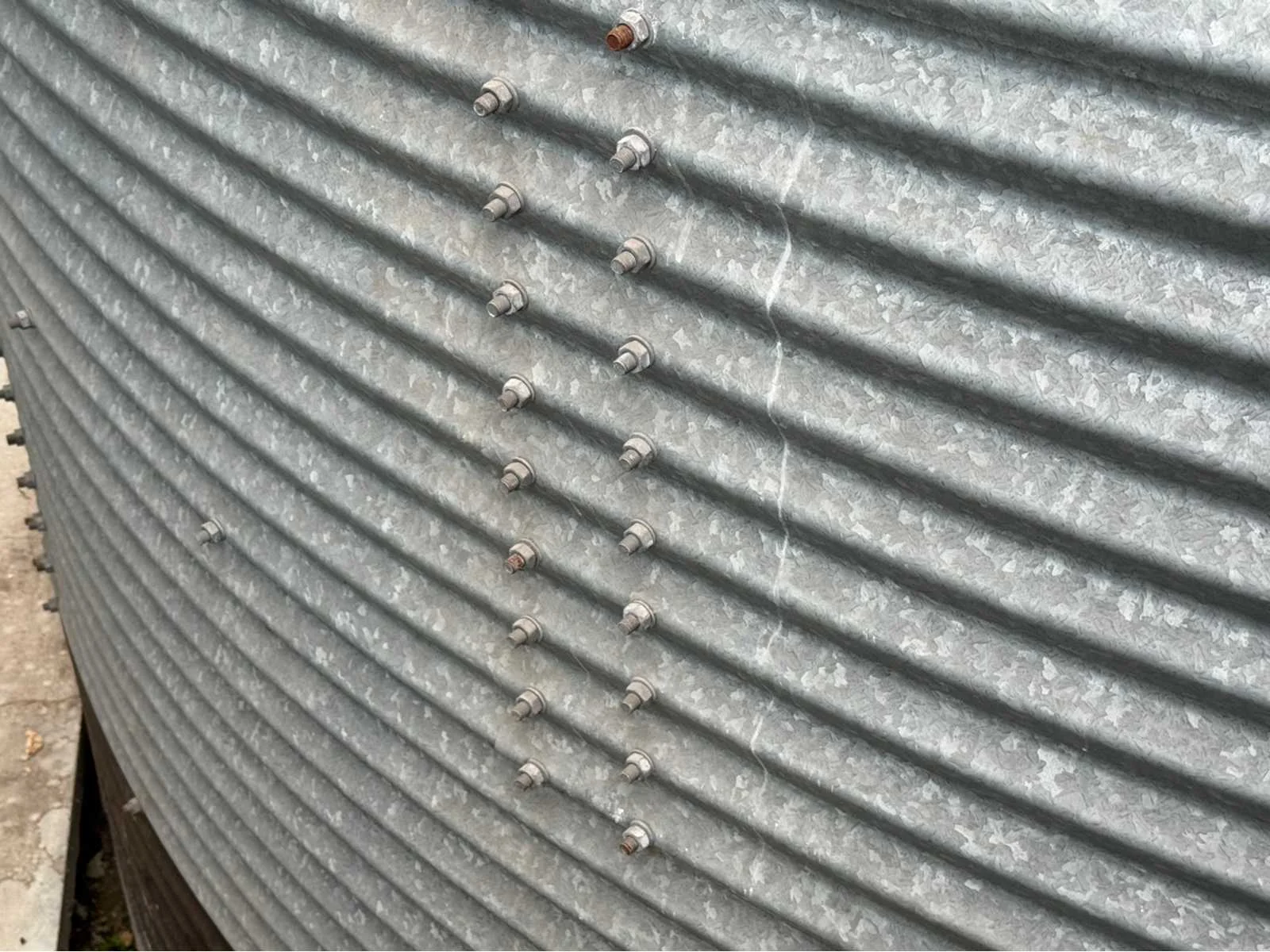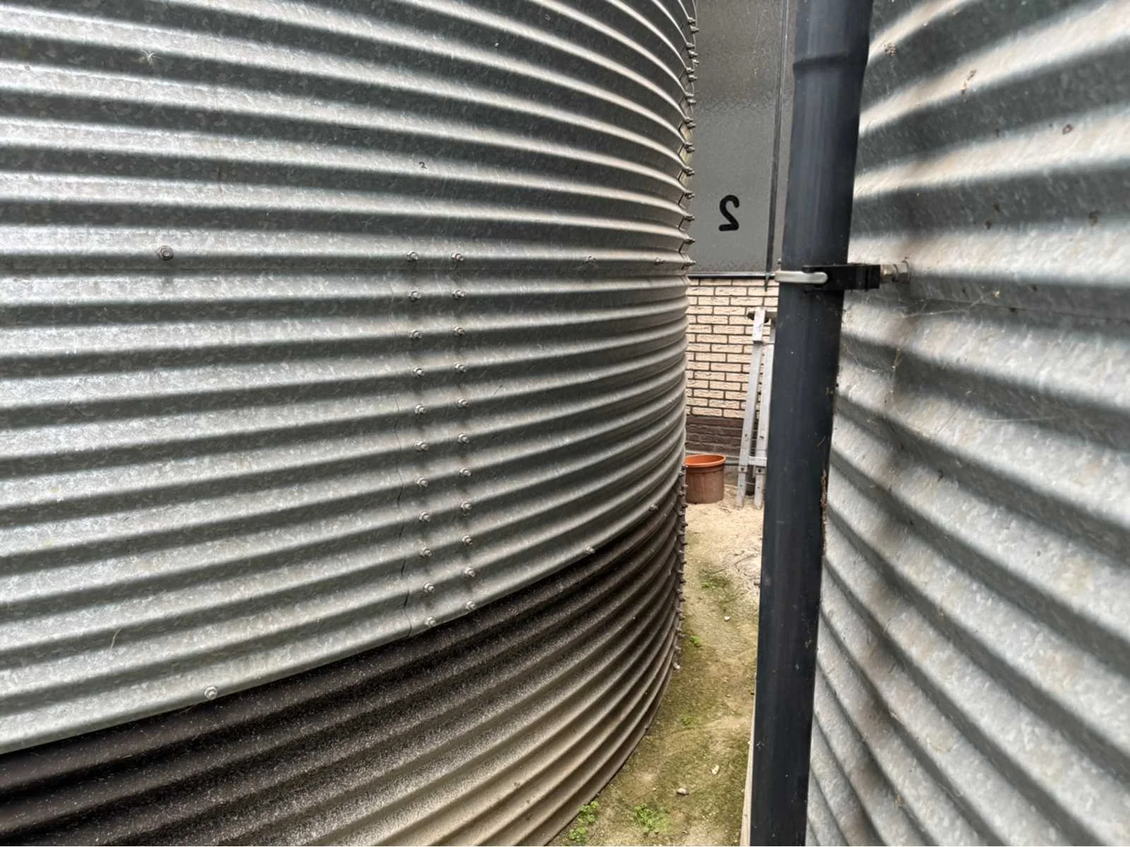 1 ring bestaande uit 5 platen; totaal 5 ringen hoog; diameter tank is ca. 5600 mm; hoogte tank is 3860 mm; bestaande uit stalen silo platen; vilt; zeil; RVS ratels; bouten; moeren; ringen en afdek zeil op de silo; wordt vakkundig gedemonteerd en transport klaar gemaakt door verkoper; LET OP; afhalen op afspraak! Staal: true
