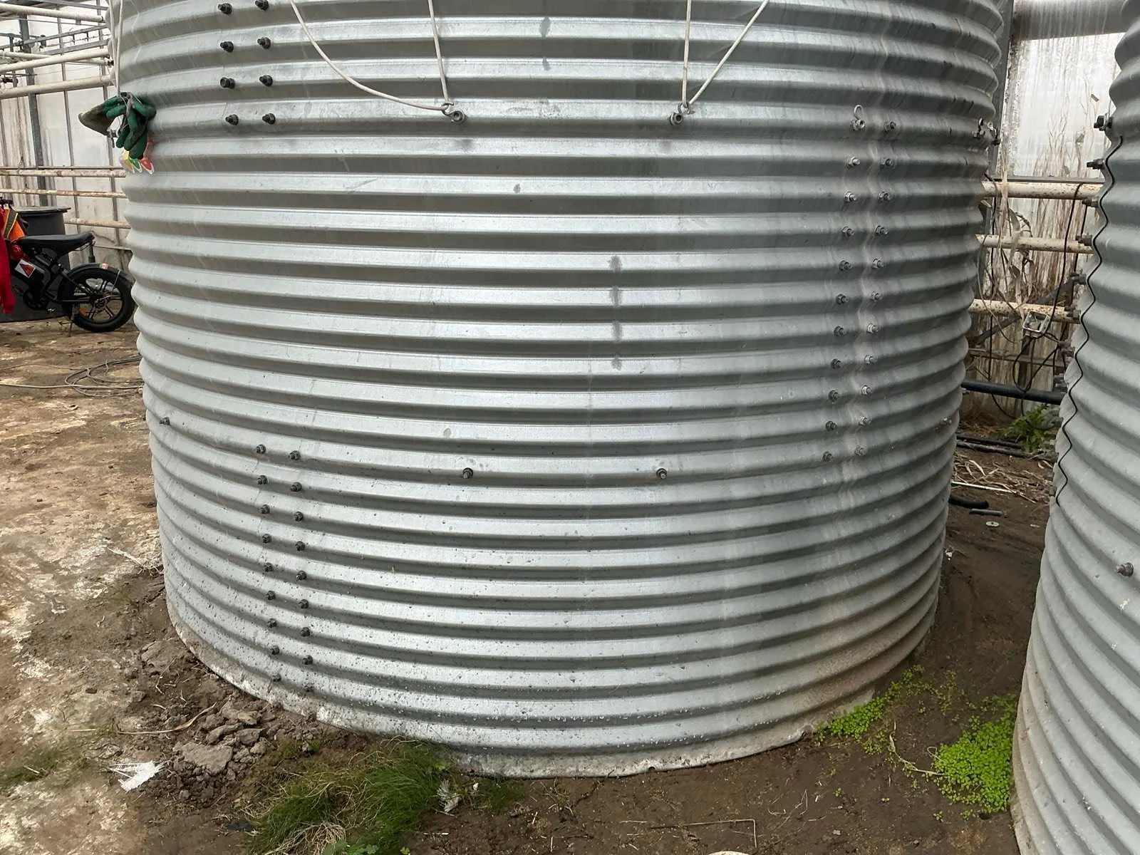 Bestaande stalen silo platen; vilt; zeilen zak; afdek doek; RVS ratels; bouten en moeren; wordt gedemonteerd door verkoper Merk: Buwatec Totale afmeting Breedte: 2730mm Totale afmeting Hoogte: 2360mm