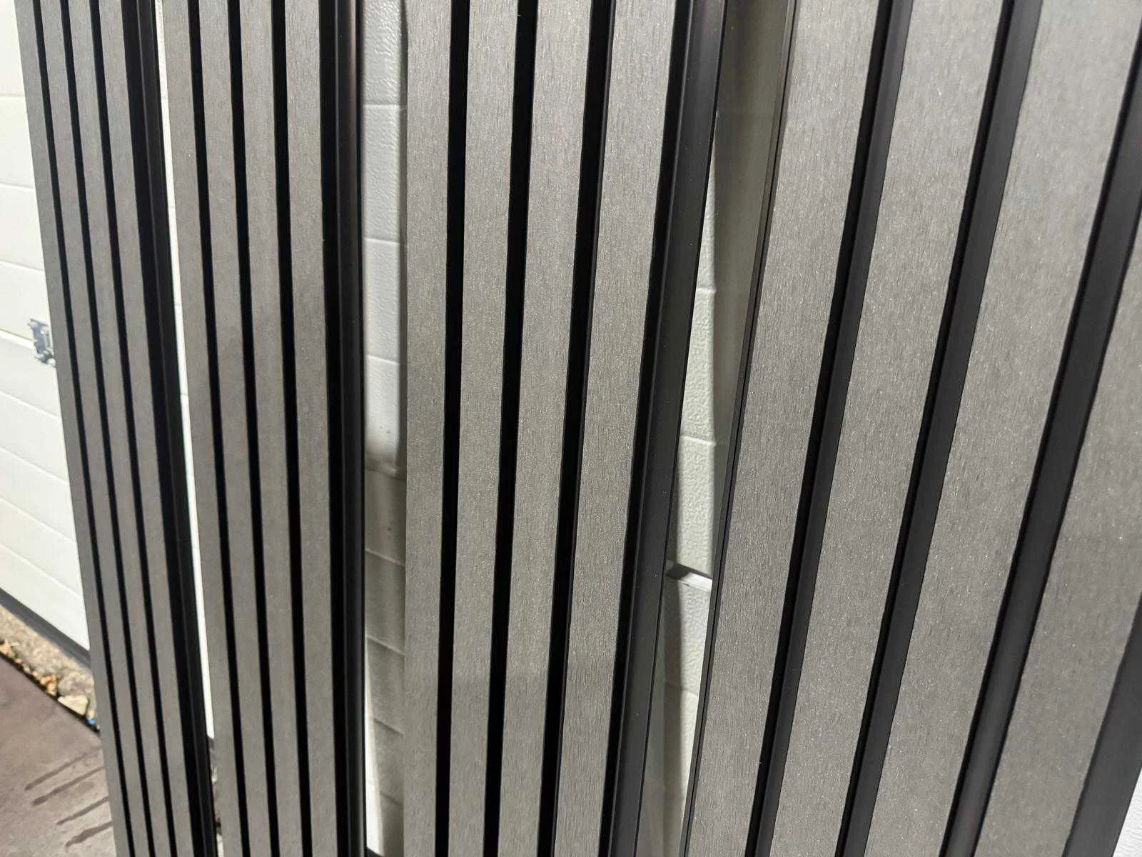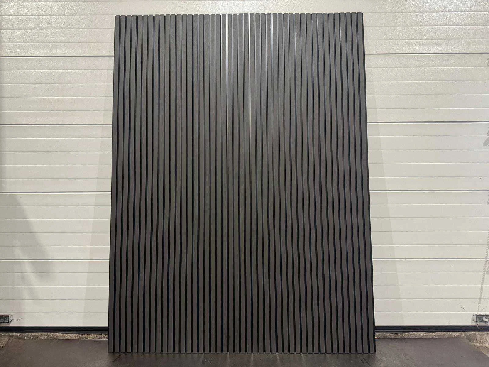 Lengte 2900 mm; breedte 219 mm; werkende breedte 200 mm; plank dikte 26 mm; kleur voorzijde geborsteld zwart; kleur tussen de voorzijdes is zwart; ongebruikte planken; gestapeld op 1 pallet; Materiaal: Composiet