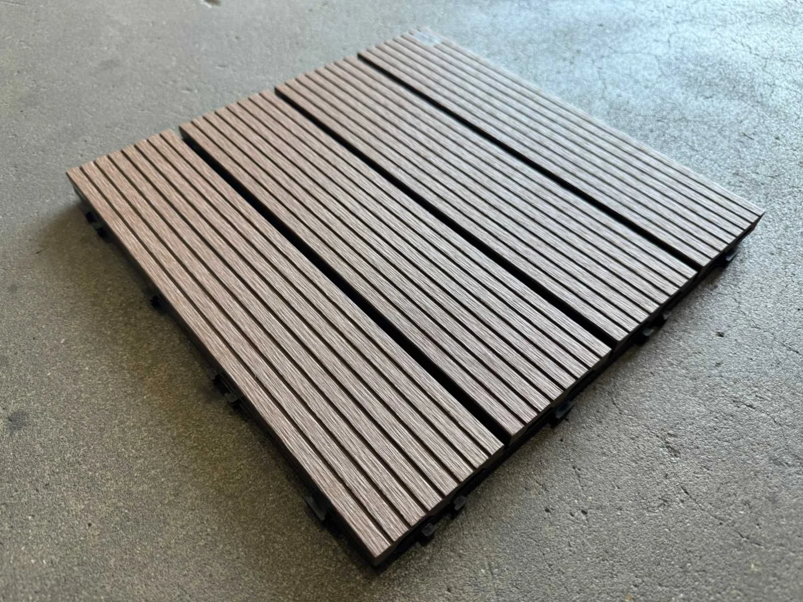 1 tegel is 0,09 m2; tegels zijn koppelbaar; dit kavel bestaat uit 111 stuks tegels Kleur: Coffee Lengte: 300mm Breedte: 300mm Dikte: 20mm