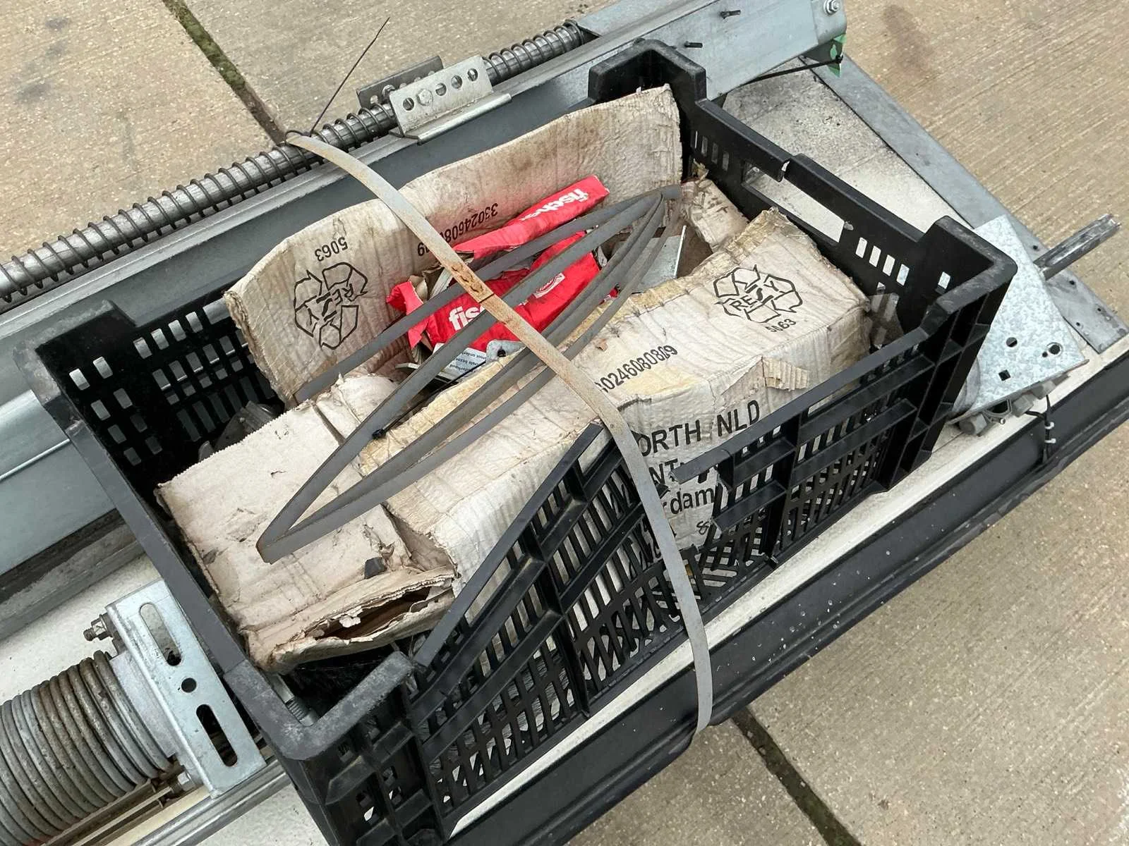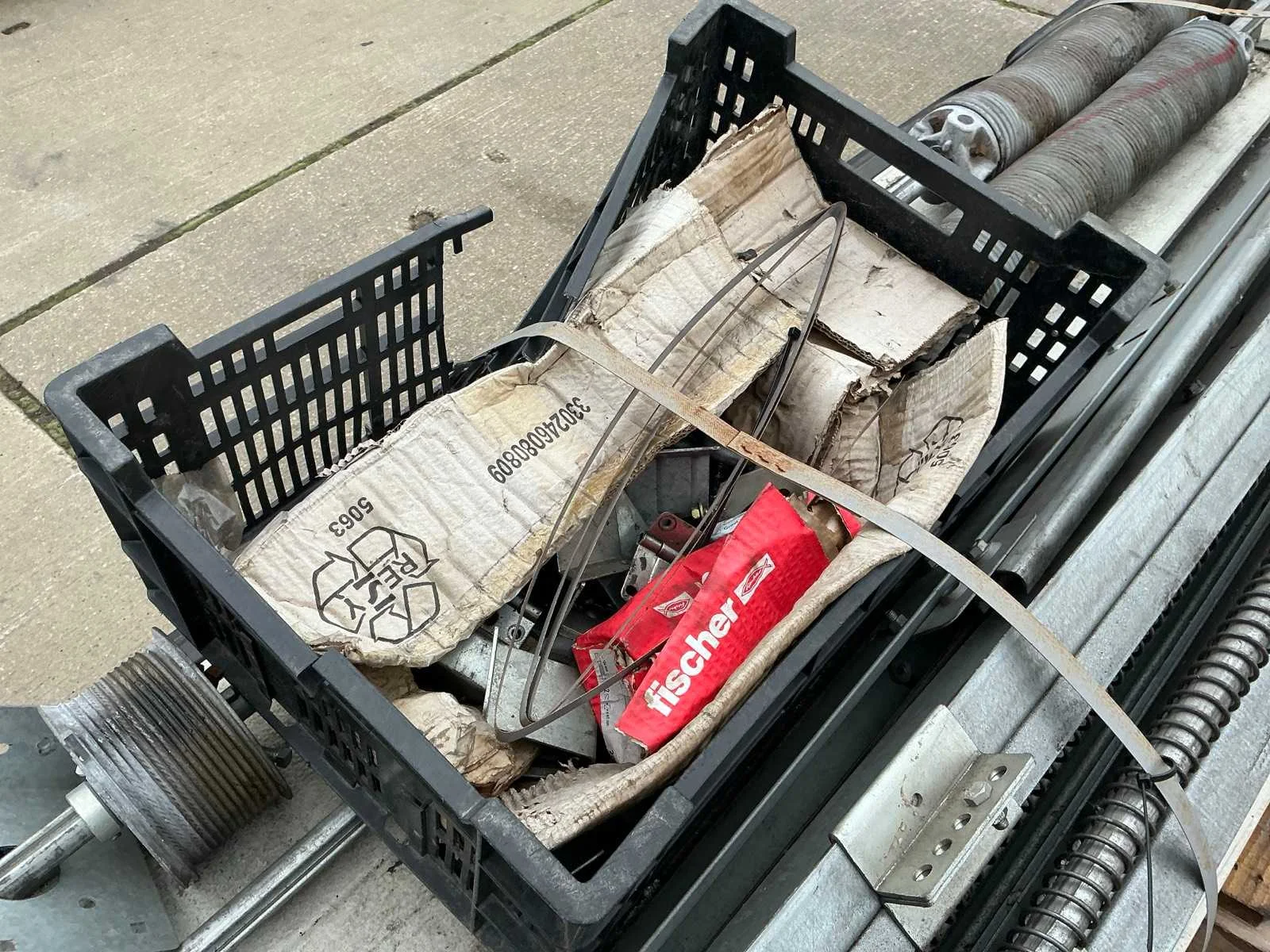 Met railsen; veren pakket; aandrijfmotor; bediening; schakelkast; reeds gedemonteerd en transport klaar; Binnendeur: true Buitendeur: true Afmeting h: 2860mm Afmeting b: 3530mm