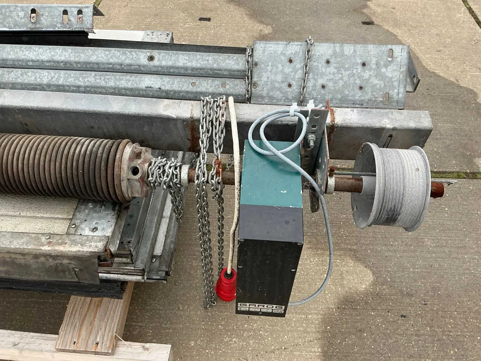 Met railsen; veren pakket; aandrijfmotor; bediening; schakelkast; reeds gedemonteerd en transport klaar; Binnendeur: true Buitendeur: true Afmeting h: 3200mm Afmeting b: 4050mm