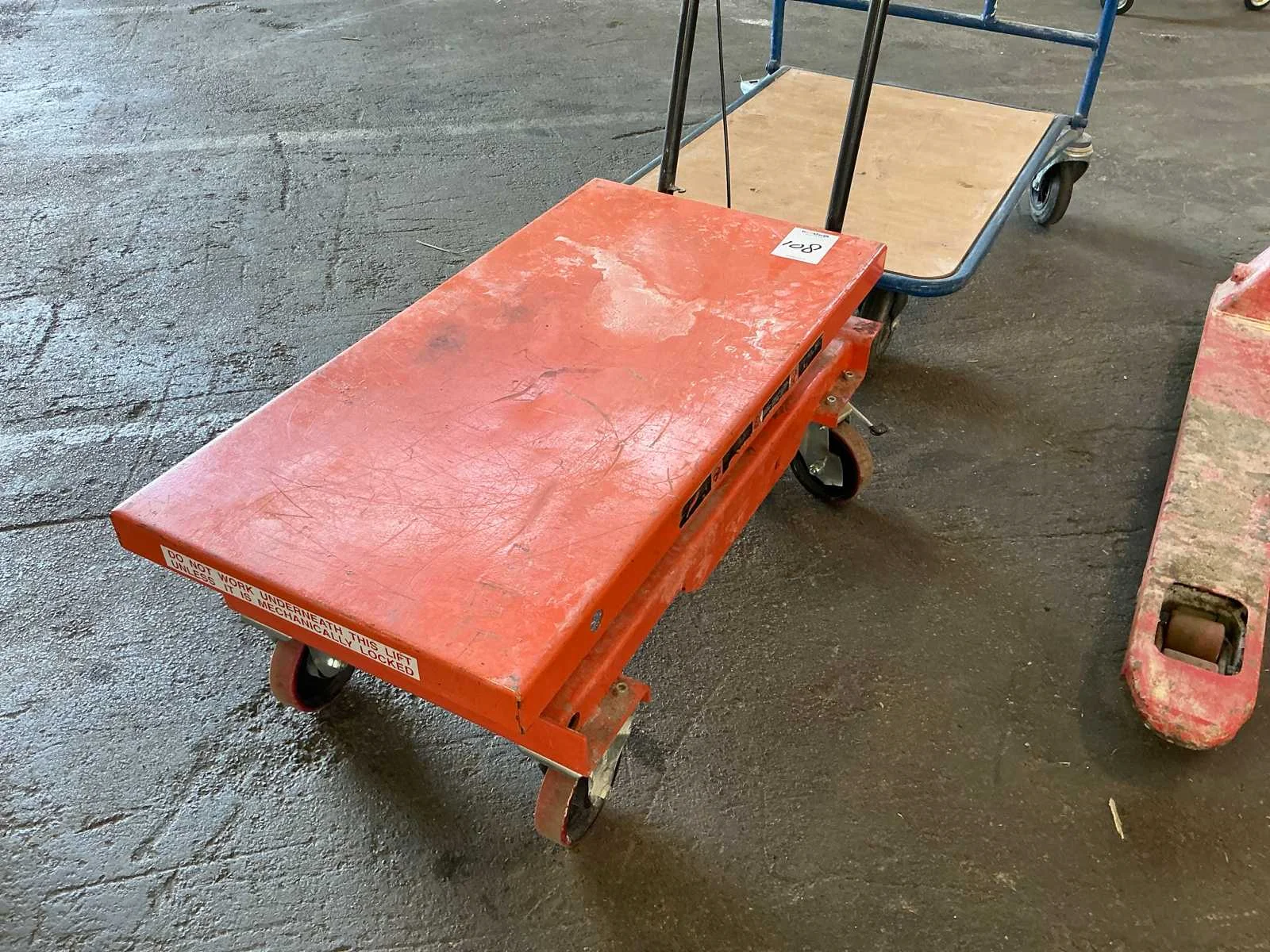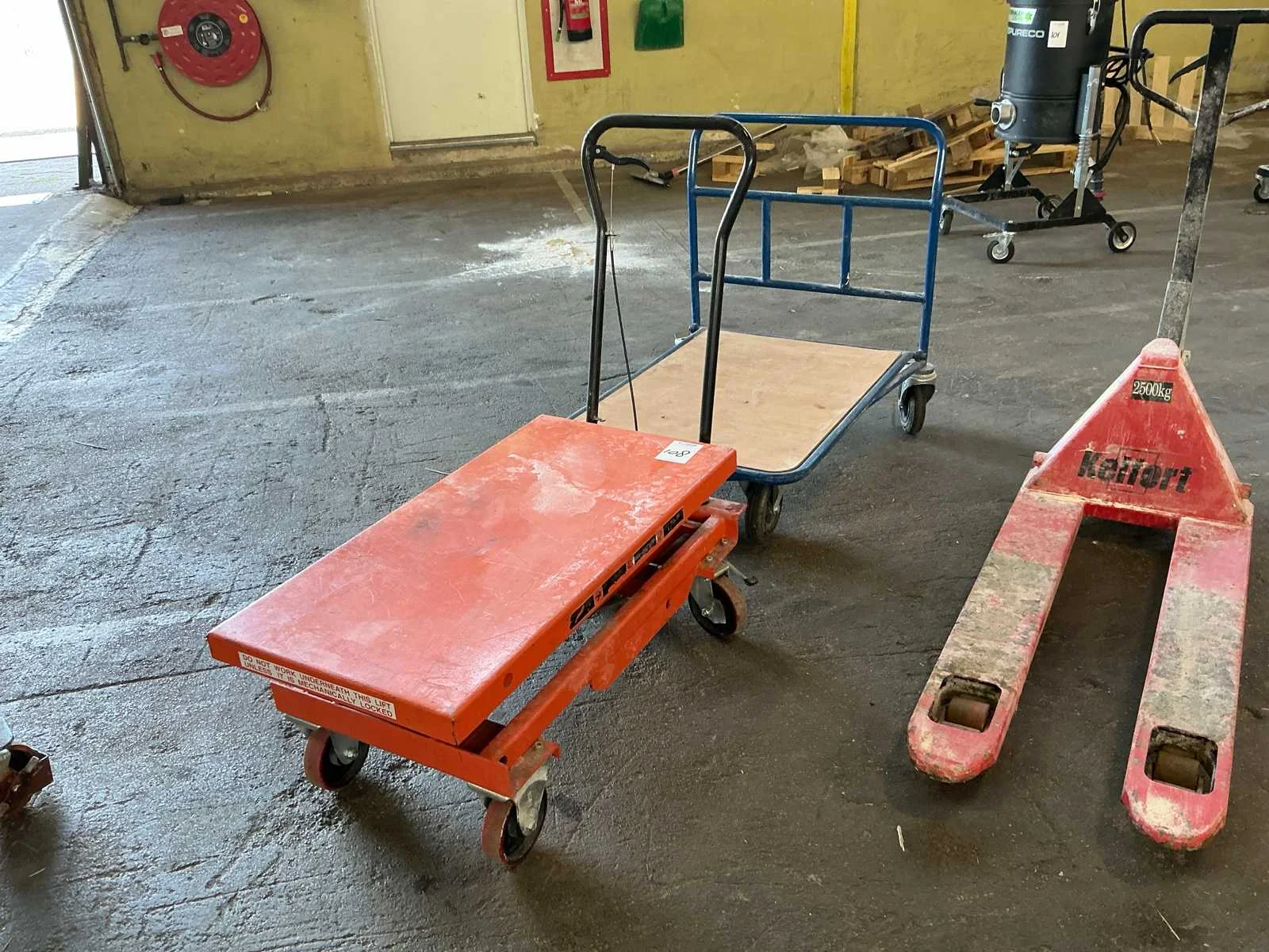Plateau afmeting 100x50 cm, capaciteit 500 kg, maximale hefhoogte 1575 mm, inclusief plateauwagen Merk: Rema