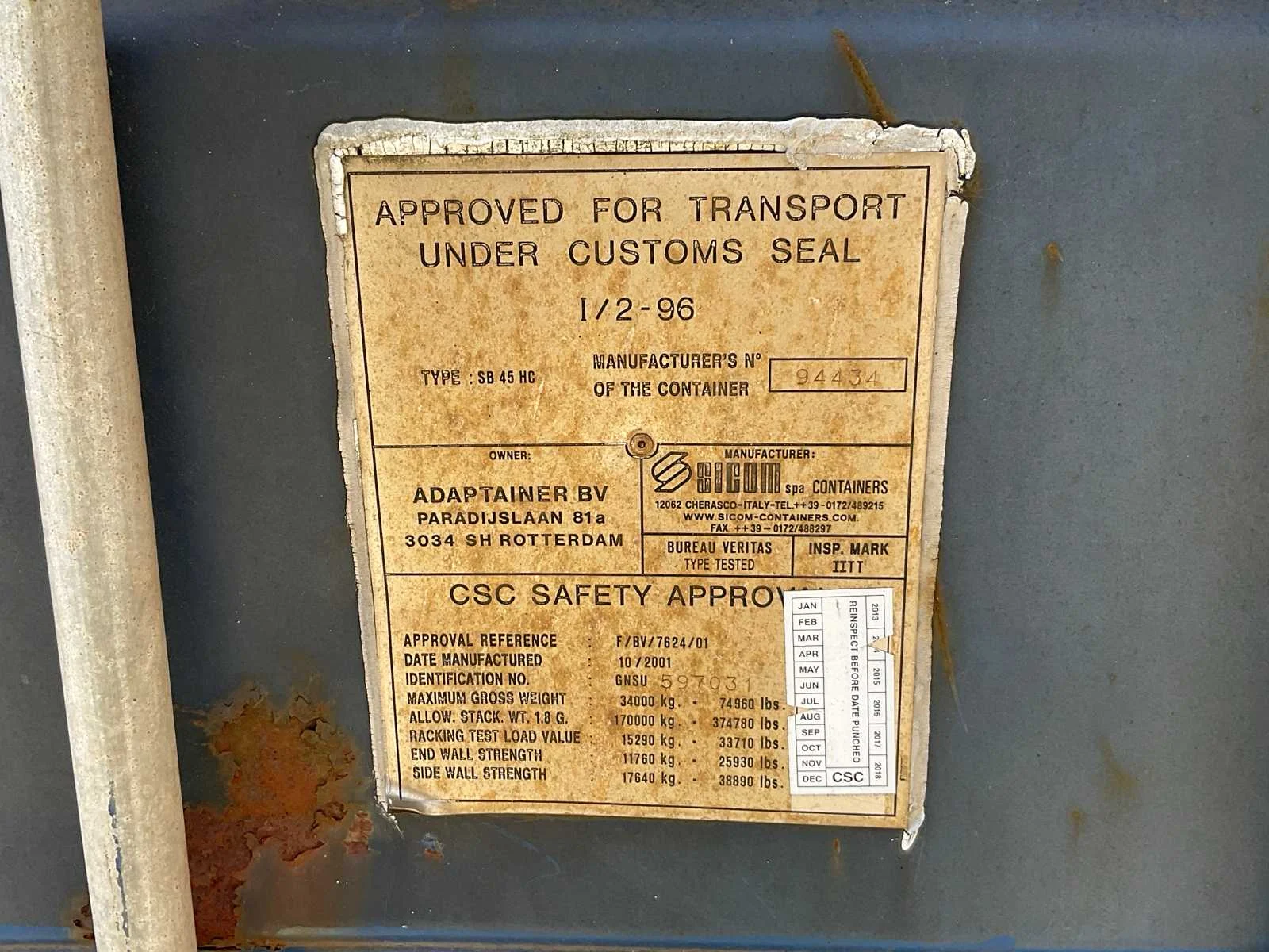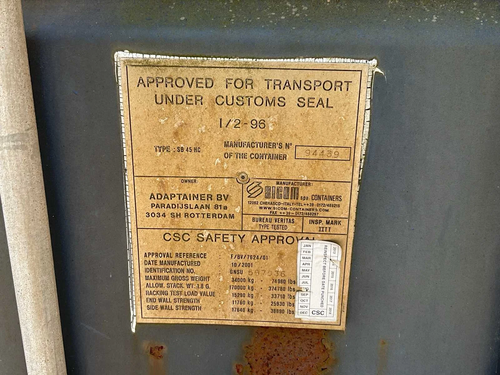 Incl. inhoud Lengte (ft): 45 High cube: true Totale afmeting L: 13500mm Totale afmeting Breedte: 2450mm Totale afmeting Hoogte: 2900mm