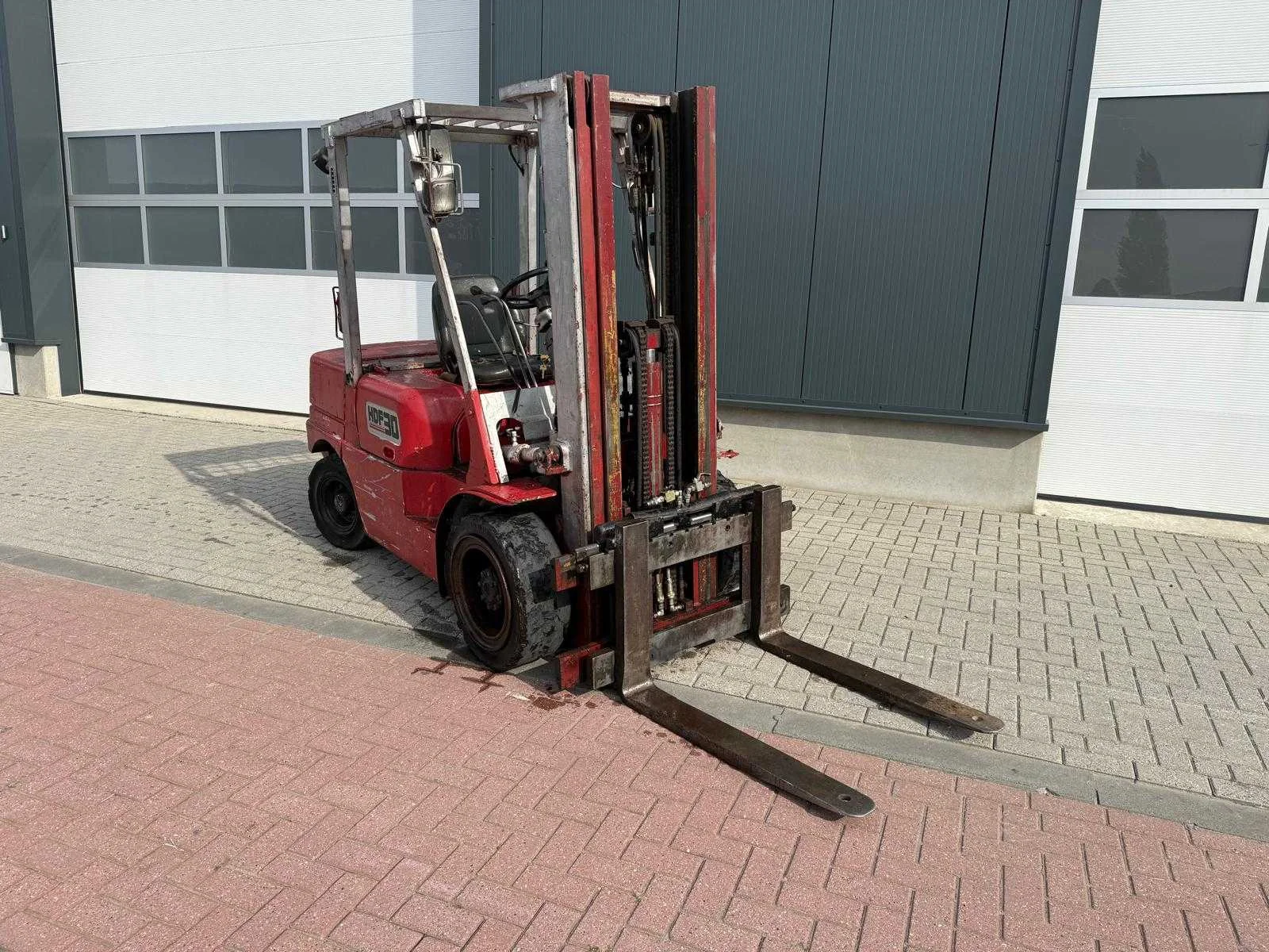 Triplomast en side shift, start rijdt heft daalt. Merk: Halla Type: HFD30 Serienummer: 1008 Brandstof: Diesel Triple mast: true Hefvermogen: 3000kg