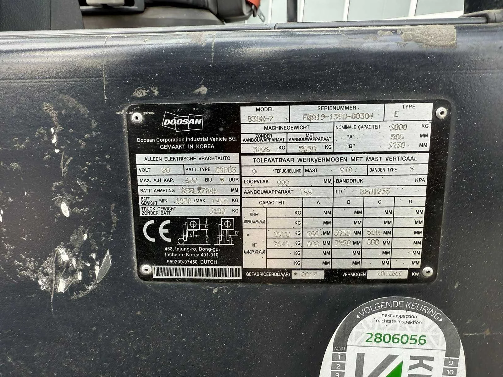 Functioneert naar behoren. Merk: Dosan Type: B30X-7 Bouwjaar: 2017 Serienummer: 1390-00304 Afgelezen urenstand: 1912 Hefvermogen: 3000kg