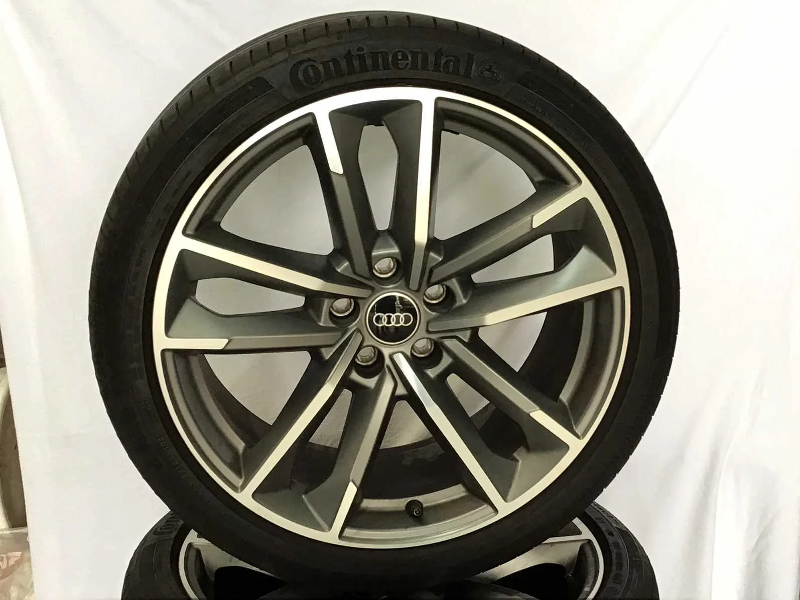 Productomschrijving: 19 inch Audi A5 S5 F5 s-line LM set Audi-Sport velgen met banden merk Continental maat 255-35-R19-96V profiel 4 tot 5 zeer goede staat, met bandenspanning sensor Merk: Audi Sport Model: Q3 A4 A5 Velgmaat: 19
