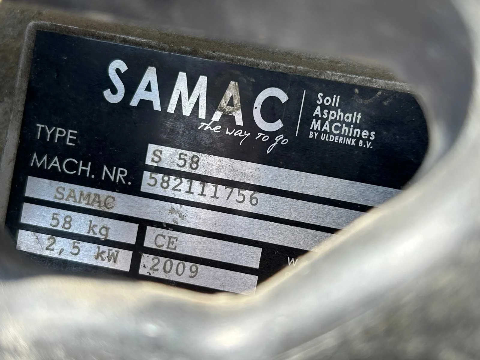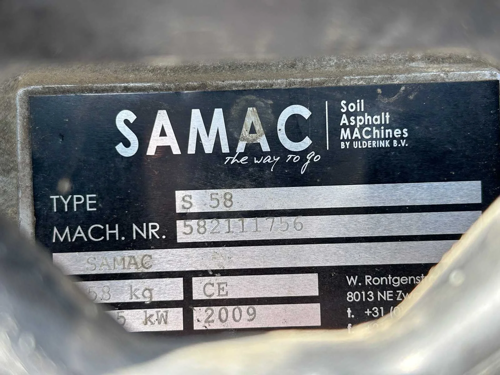 Op werking getest Merk: Samac Type: S58 Bouwjaar: 2009 Serienummer: 582111756 Eigen gewicht: 58kg Totale afmeting L: 750mm Totale afmeting Breedte: 400mm Totale afmeting Hoogte: 1000mm