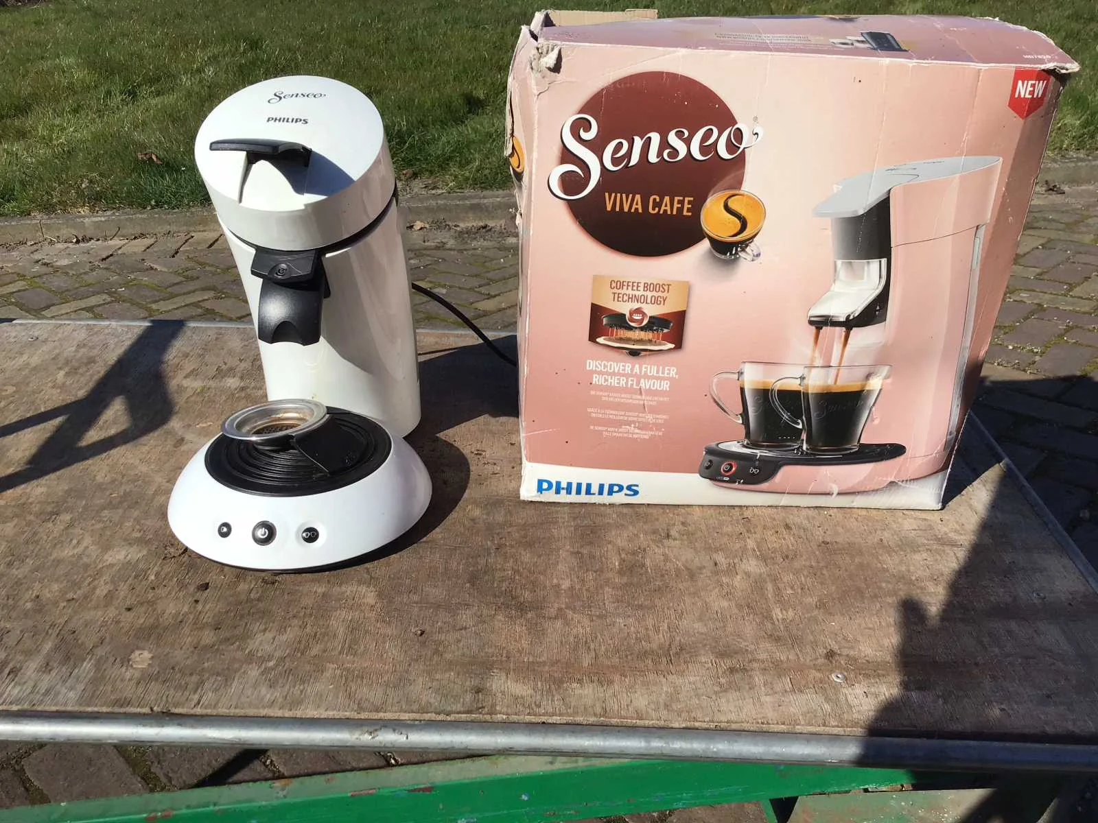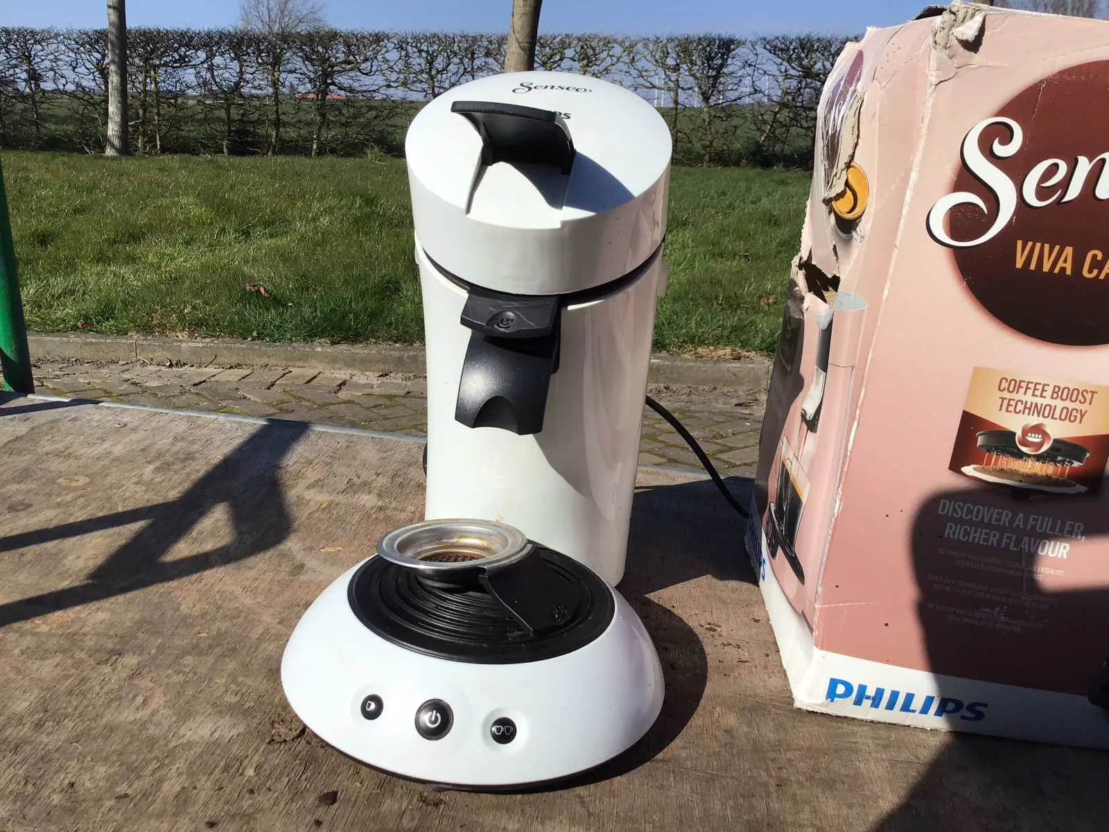 Merk: Philips Model: Senseo Kleur: Wit Hoogte: 35cm Materiaal: Kunststof