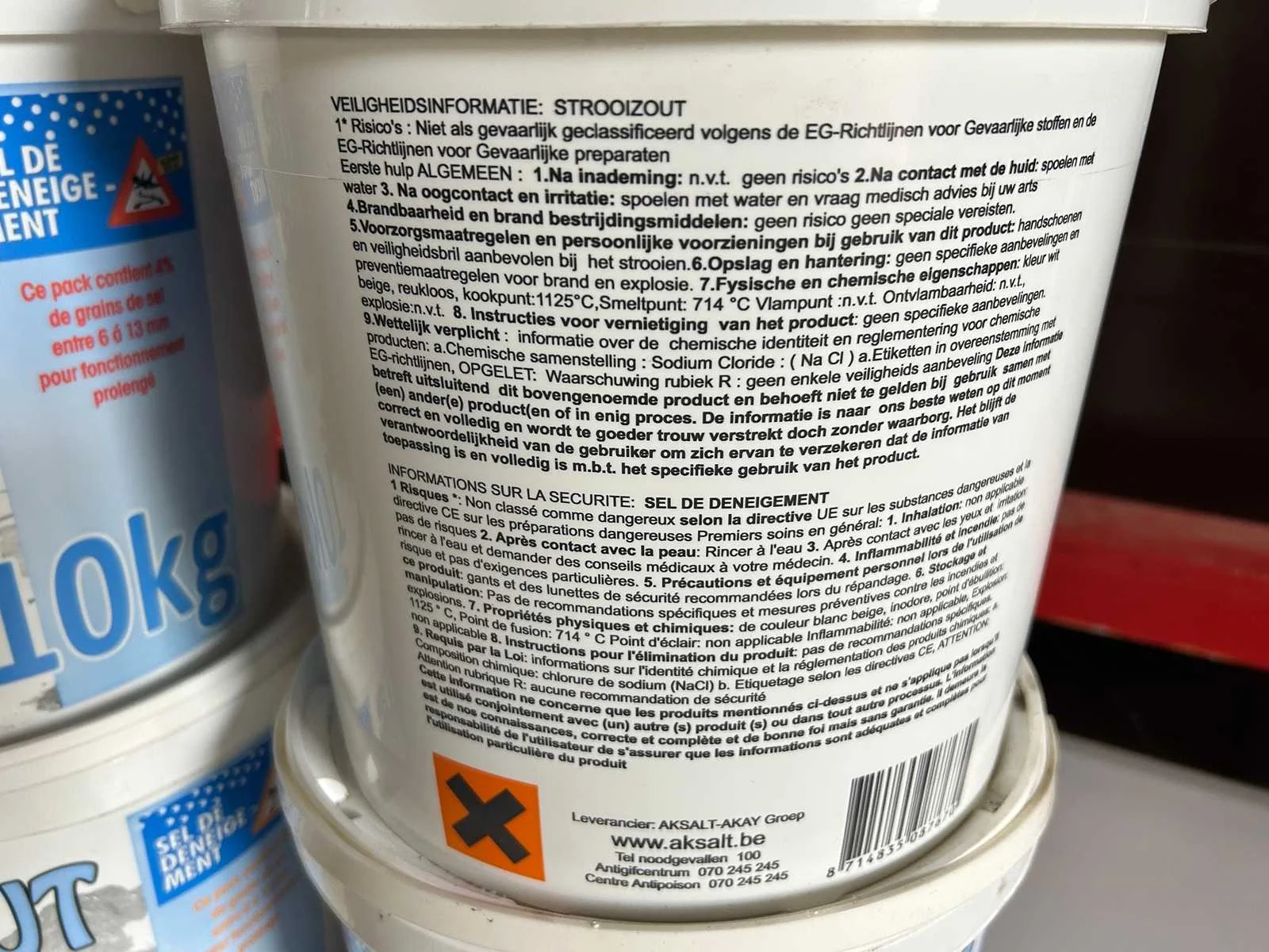 Informatie over dit strooizout: • Het is effectief tegen gladheid en onkruid. • Het bevat natriumchloride (NaCl) met een gehalte van 99,9% voor maximale effectiviteit. • Het heeft een vochtgehalte van minder dan 3% om klontering te voorkomen. • De korrelgrootte varieert van 0,125 tot 6,3 mm voor een snelle werking. • Het is professioneel strooizout met een directe werking en zorgt voor langdurige gladheidsbestrijding. Merk: Strooizout Type: Wegenzout