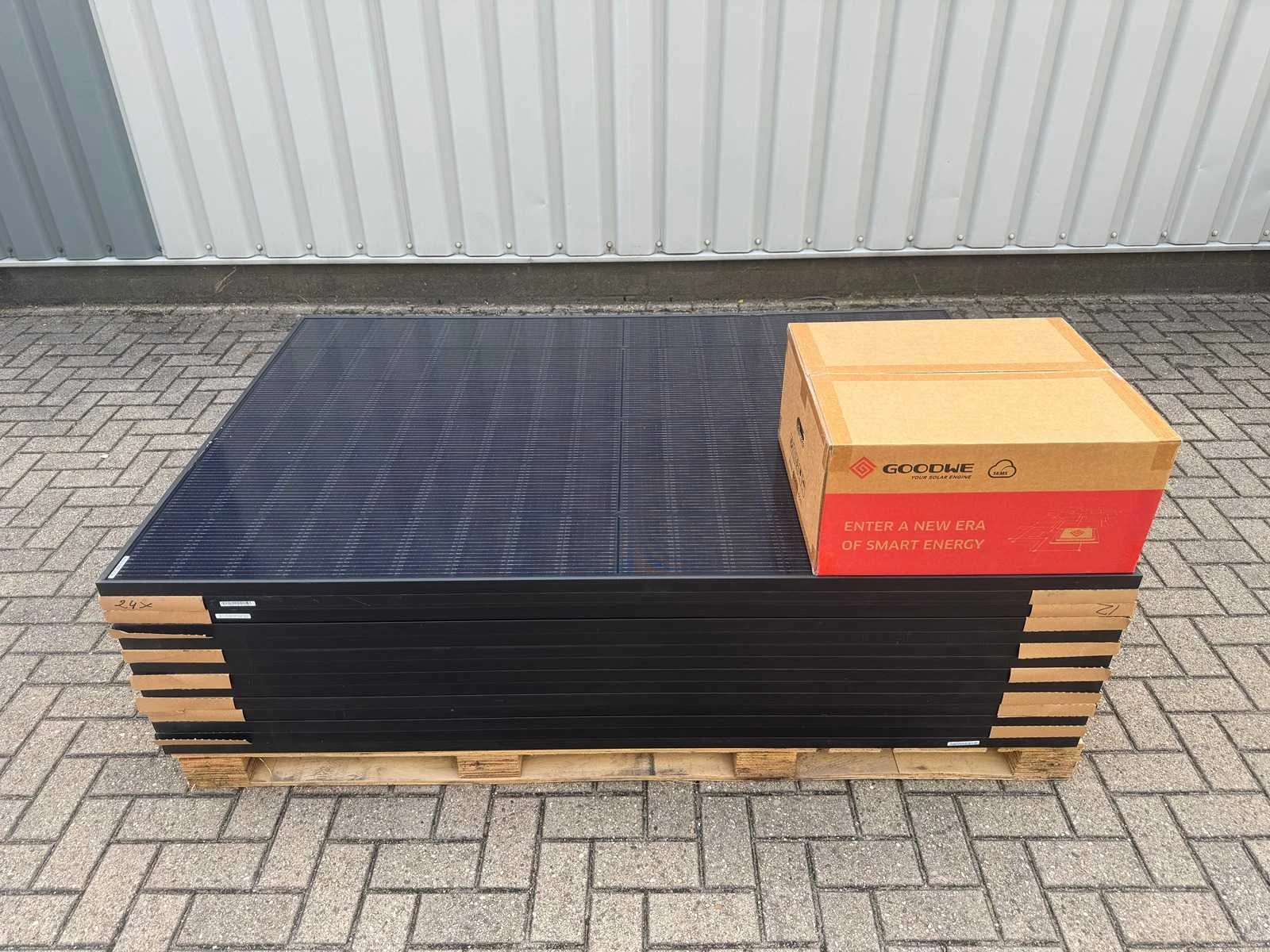 Set van 14 Full Black zonnepanelen Jinko JKM440N-54HL4R-B(440 wp) met GoodWe GW5048-ES Hybride omvormer (1-fase) 5 kW omvormer: GoodWe GW5048-ES, hybride omvormer enkelfase, 2-MPPT totaal vermogen: 6160Wp vermogen: 440 Wp per zonnepaneel conditie: nieuw Merk: Jinko Type: JKM440N-54HL4R-B Max. dc power: 440W Eigen gewicht: 21kg Totale afmeting L: 1762mm Totale afmeting Breedte: 1134mm Totale afmeting Hoogte: 30mm
