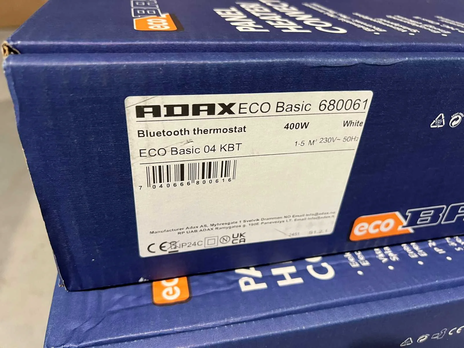 Merk: Adax Type: Neo Basic H 08 KBT Vermogen: 0,4-0,8kW Aansluiting: 230V