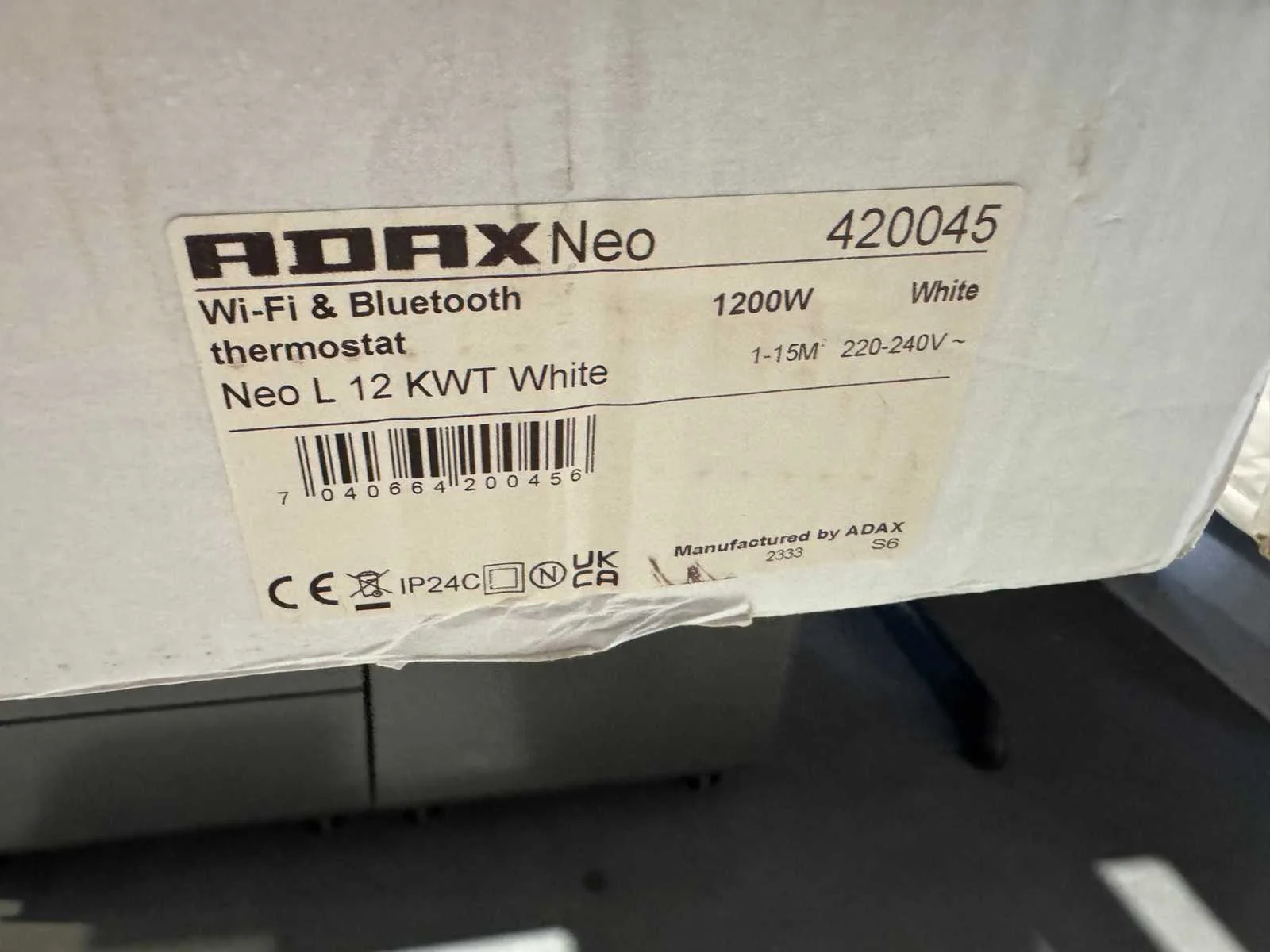 Merk: Adax Type: Neo L 12 KWT Vermogen: 1.2kW Aansluiting: 230V