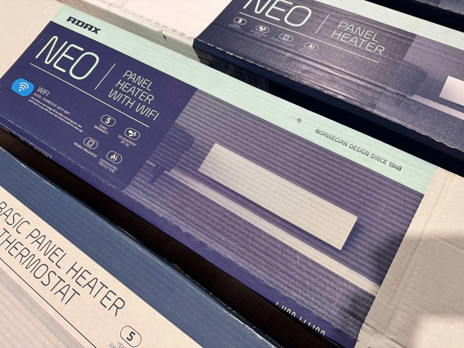 Merk: Adax Type: NEO L 08 KWT Vermogen: 0.8kW Aansluiting: 230V