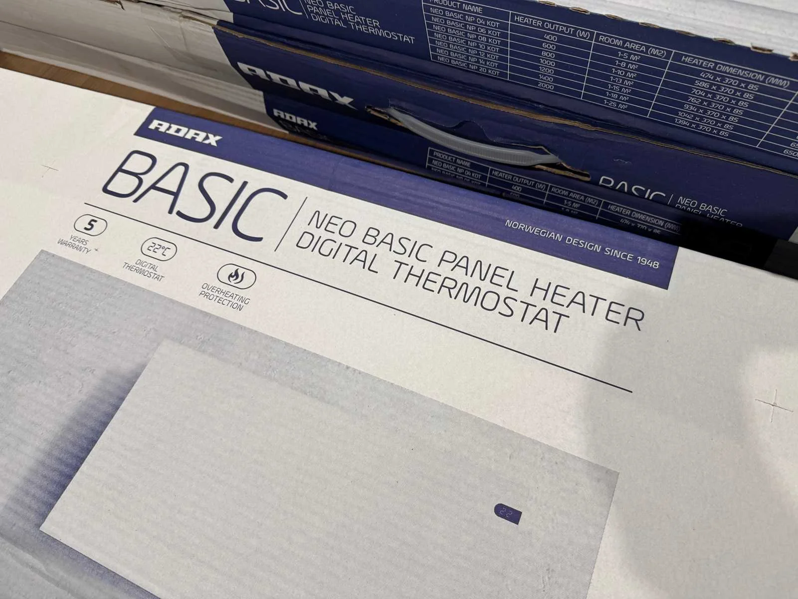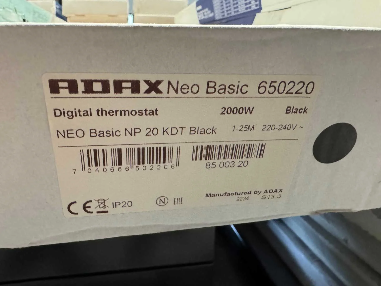 Merk: Adax Type: NEO Basic NP 20 KDT Vermogen: 2kW Aansluiting: 230V