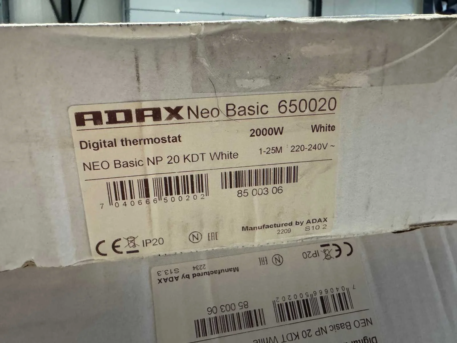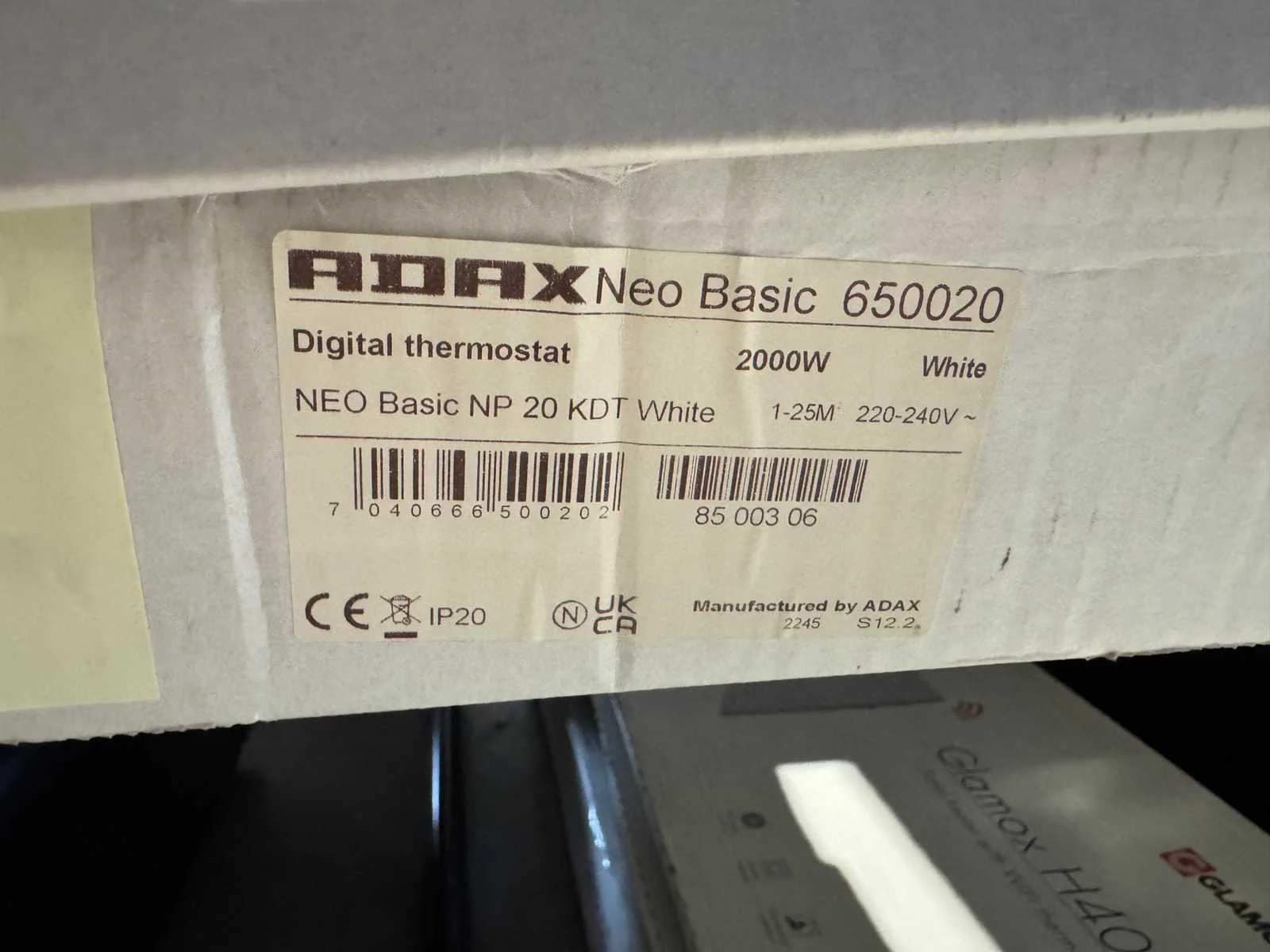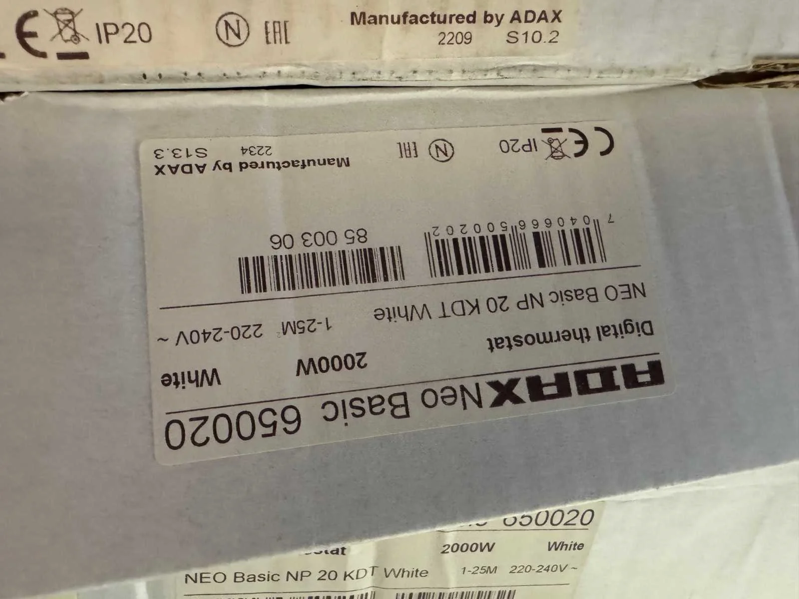 Merk: Adax Type: NEO Basic NP 20 KDT Vermogen: 2kW Aansluiting: 230V