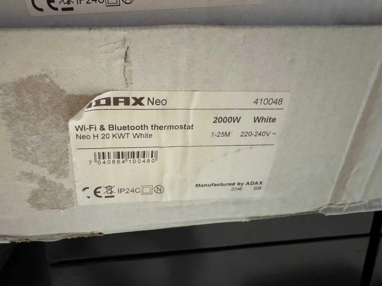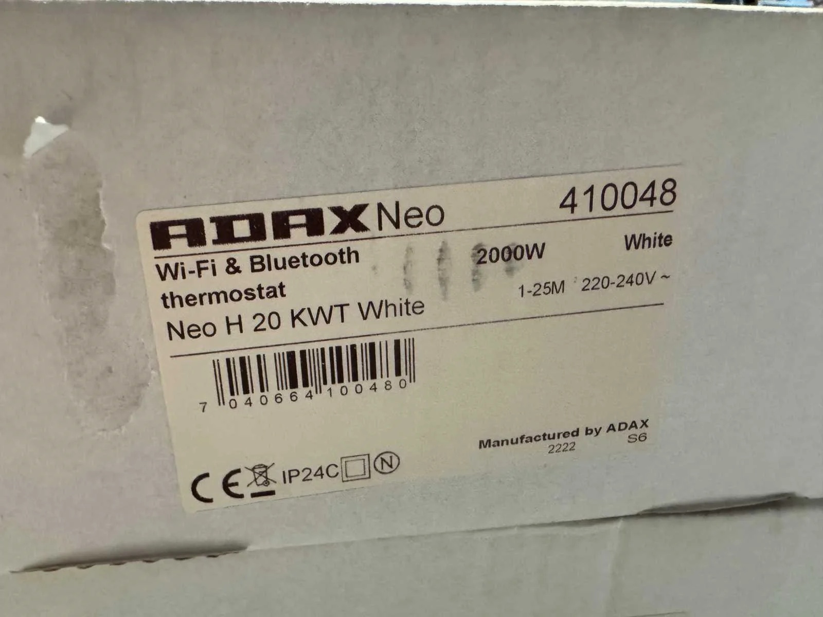 Merk: Adax Type: NEO H 20 KWT Vermogen: 2kW Aansluiting: 230V