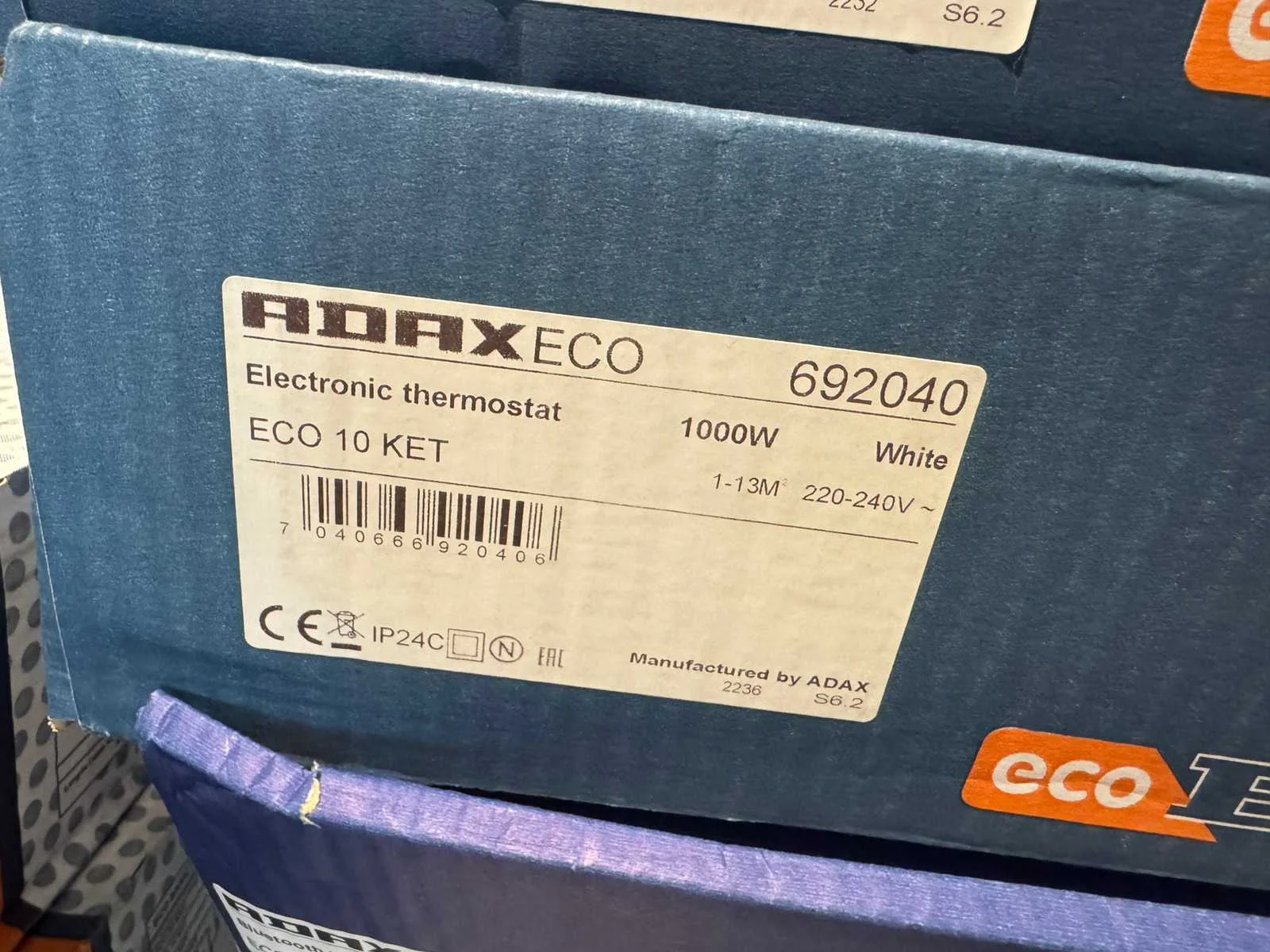 Merk: Adax Type: ECO 10 KET Vermogen: 1kW Aansluiting: 230V