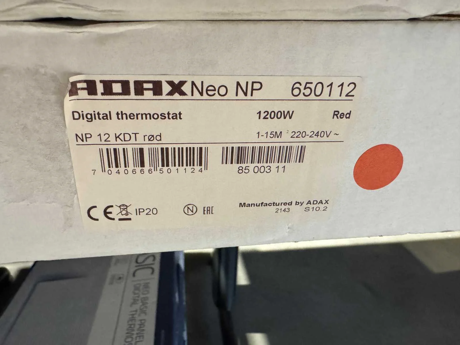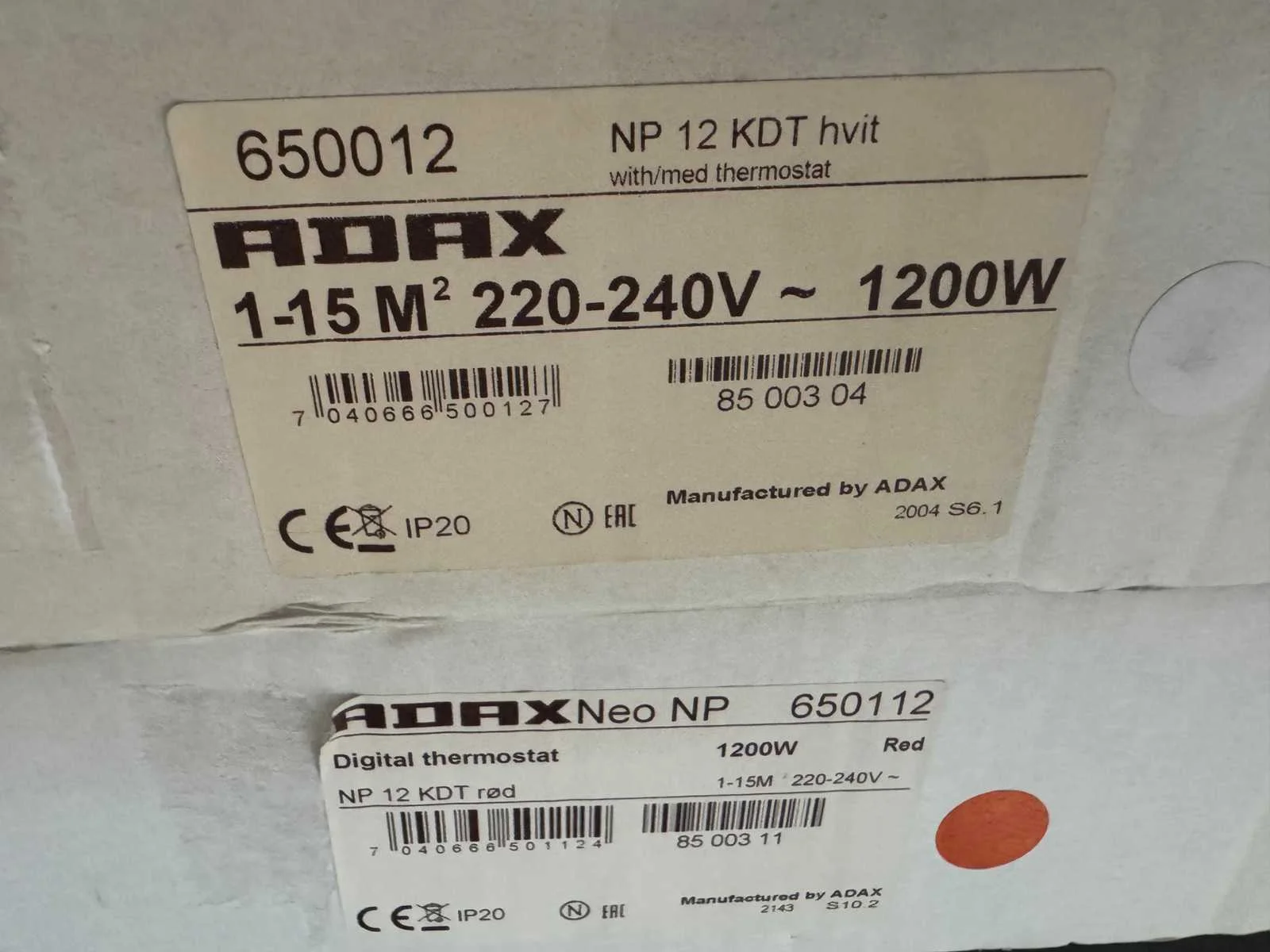Merk: Adax Type: Neo Basic NP 12 KDT Vermogen: 1.2kW Aansluiting: 230V
