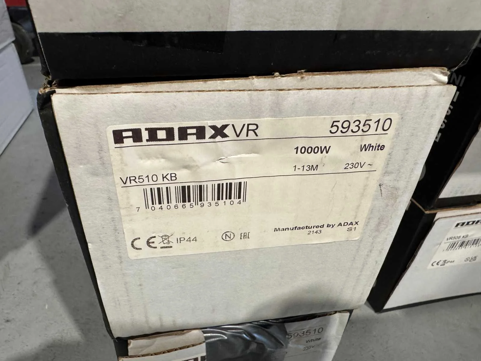 Merk: Glamox Type: VR510 KB Vermogen: 1000W Aansluiting: 230V