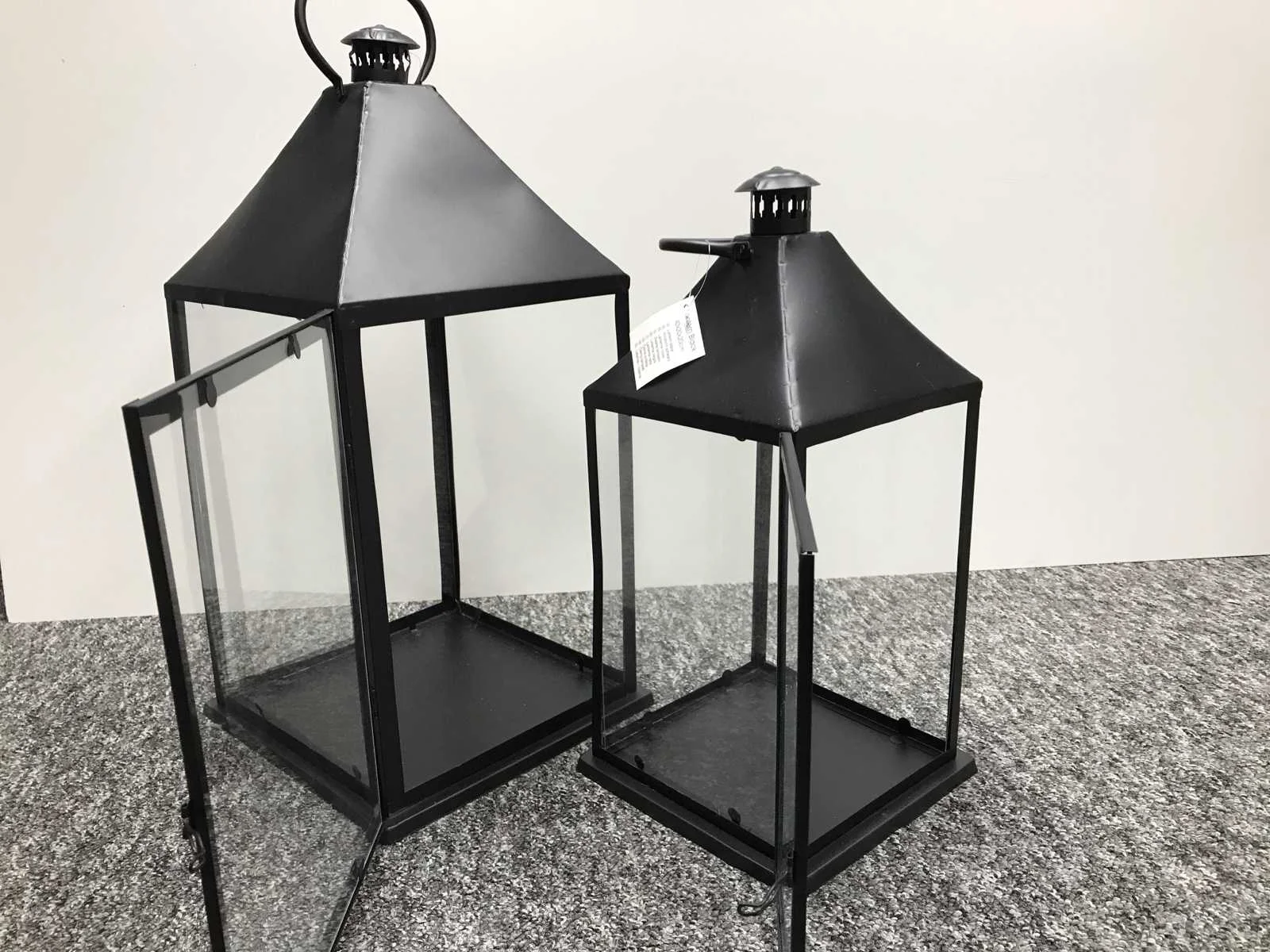 Ongebruikt in de verpakking; Windlicht-set; 50x25x26cm; 40x20x20cm; zwart; metaal met glas; set van 2 stuks.