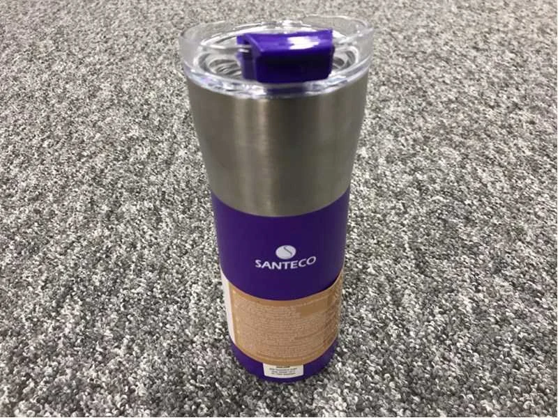 Totale afmeting B: 80 mm; totale afmeting H: 205 mm; omschrijving: ongebruikt in de verpakking; dubbelwandig roestvrijstalen vacuumisolatie; 0.5L; lekvrije Flip-top deksel Merk: Santeco Type: Kariba purple