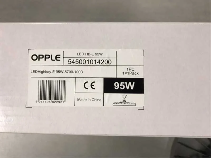 Hanglamp: ja; LED: ja; aansluiting: 220 V; vermogen: 95,00 W; kleurtemperatuur: 5700 K; gemiddelde levensduur: 50000 hr; beschermingsgraad (IP): 65; totale afmeting B: 280 mm; omschrijving: ongebruikt in de verpakking; 1014200; materiaal: Aluminium Merk: Opple 95W Wattage: 95W