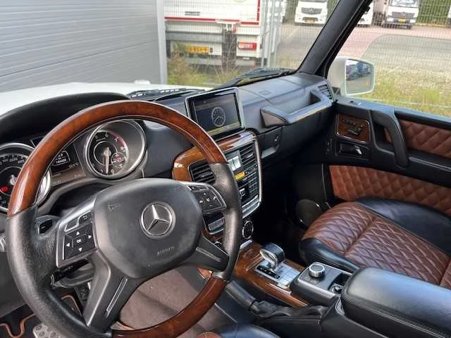 Designo leder schuifdak Distance control Schermen achter Nieuwe accu's Recent beurt uitgevoerd Merk: Mercedes-Benz Model: G-klasse G63 Type: AMG Bouwjaar: 2013 Afgelezen kilometerstand: 144000km Cilinderinhoud: 5461cc Vermogen (kW): 400kW Brandstof: benzine Chassisnummer: wdb4632411x121222 Datum eerste toelating: 1-7-2013 APK vervaldatum: 29-9-2026 Vermogen (pk): 544hp Aandrijving: 4x4 Aantal zitplaatsen: 5 Maximaal trekgewicht ongeremd: 3500kg Maximaal trekgewicht geremd: 750kg Kleur: wit Transmissie: automaat Aantal deuren: 5 Aantal sleutels: 2 Ledig gewicht: 2550kg Velgmaat: 20 Aantal cilinders: 8 Carrosserie: SUV Nationaliteit documenten: DE Onderhoudshistorie: ja Start en rijdt: start en rijdt Keuringsrapport geldig tot: 9-2026 No self drive export!: true Airconditioning: true Xenon verlichting: true LED-koplampen: true Leder bekleed: true Vierwielaandrijving 4x4: true