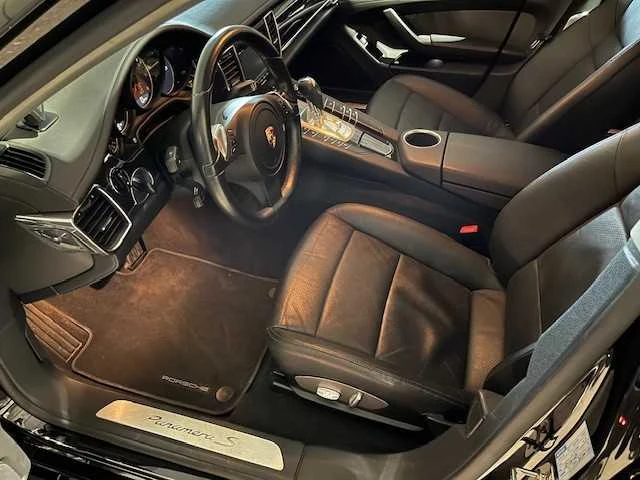 Voorzien van speciale bodykit en zwarte velgen zijn 20" met winterbanden. Er zit ook nog een set 22" velgen bij met versleten zomerbanden. NL kenteken incl apk mogelijk tegen meerprijs van 5000 ex btw Merk: Porsche Model: Panamera S Bouwjaar: 2009 Afgelezen kilometerstand: 94500km Cilinderinhoud: 4800cc Vermogen (kW): 294kW Brandstof: benzine Datum eerste toelating: 1-7-2009 Vermogen (pk): 400hp Aantal zitplaatsen: 4 Kleur: zwart Transmissie: automaat Aantal deuren: 5 Aantal sleutels: 2 Ledig gewicht: 1835kg Velgmaat: 20" Aantal cilinders: 8 Carrosserie: coupe Nationaliteit documenten: Japan Start en rijdt: start en rijdt No self drive export!: true Airconditioning: true Xenon verlichting: true Leder bekleed: true Luchtvering: true Vierwielaandrijving 4x4: true