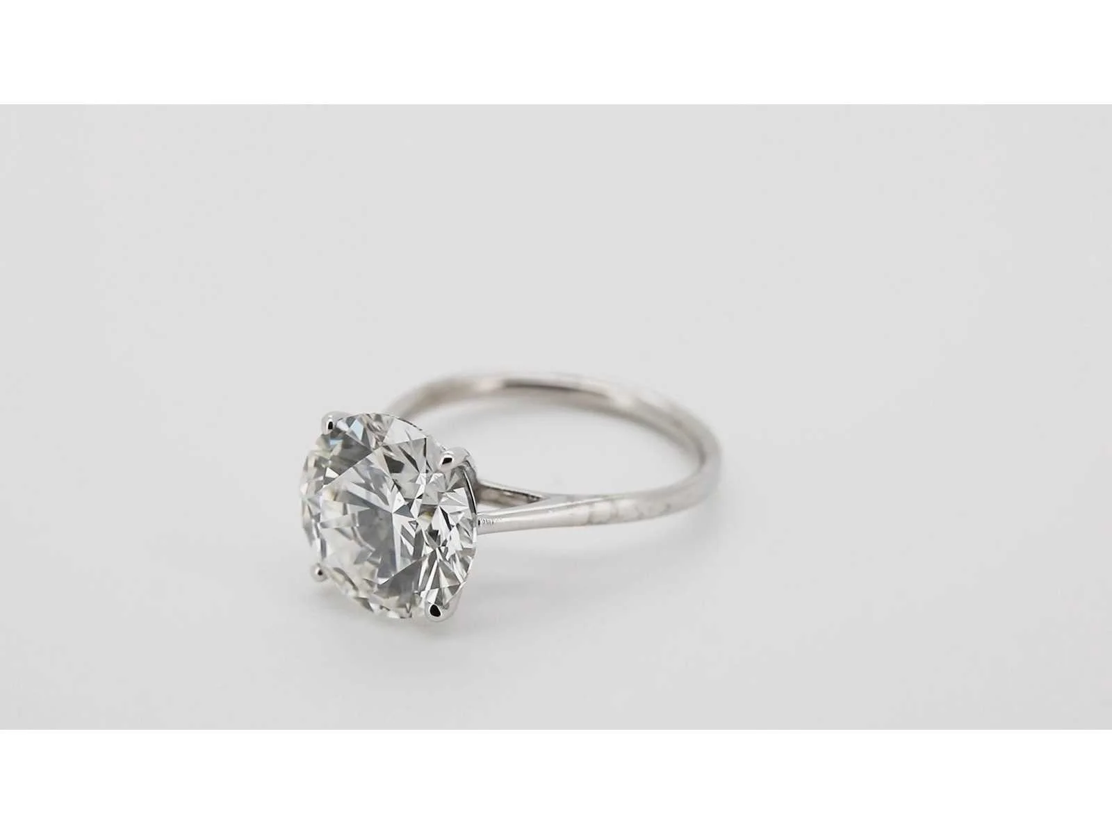 Vorm: Rond schitterend Gewicht: 5,04 ct Kleur: E Helderheid: VVS2, uitstekend Symmetrie: uitstekend Laser Inscription IGI: LG702524565 Ringgewicht: 3.60 gr. Witgoud Zuiverheid: 14 karaat (585) Materiaal: Witgoud Ringmaat : 53 Certificaat: Ja Lage schatting: 10700€