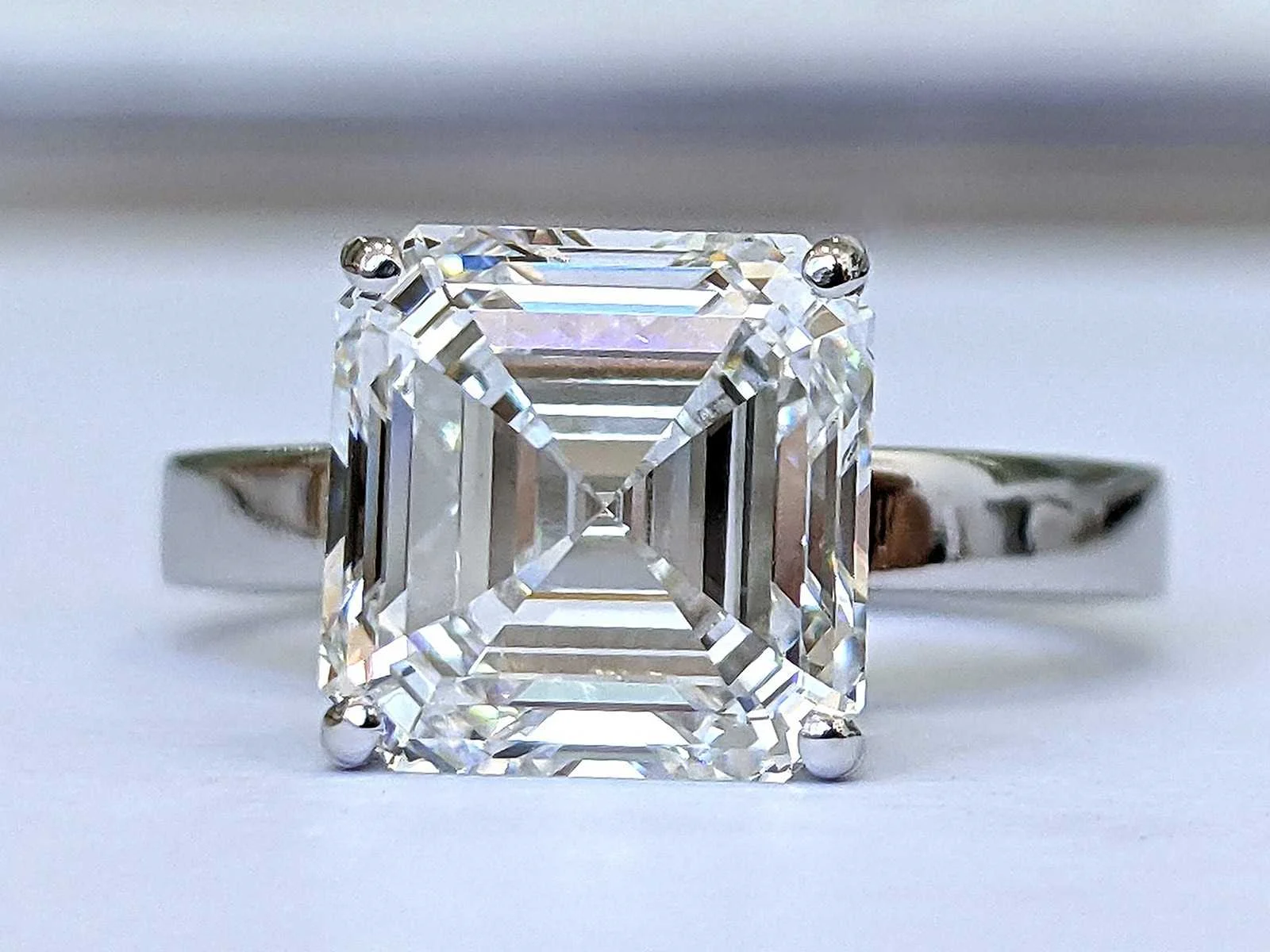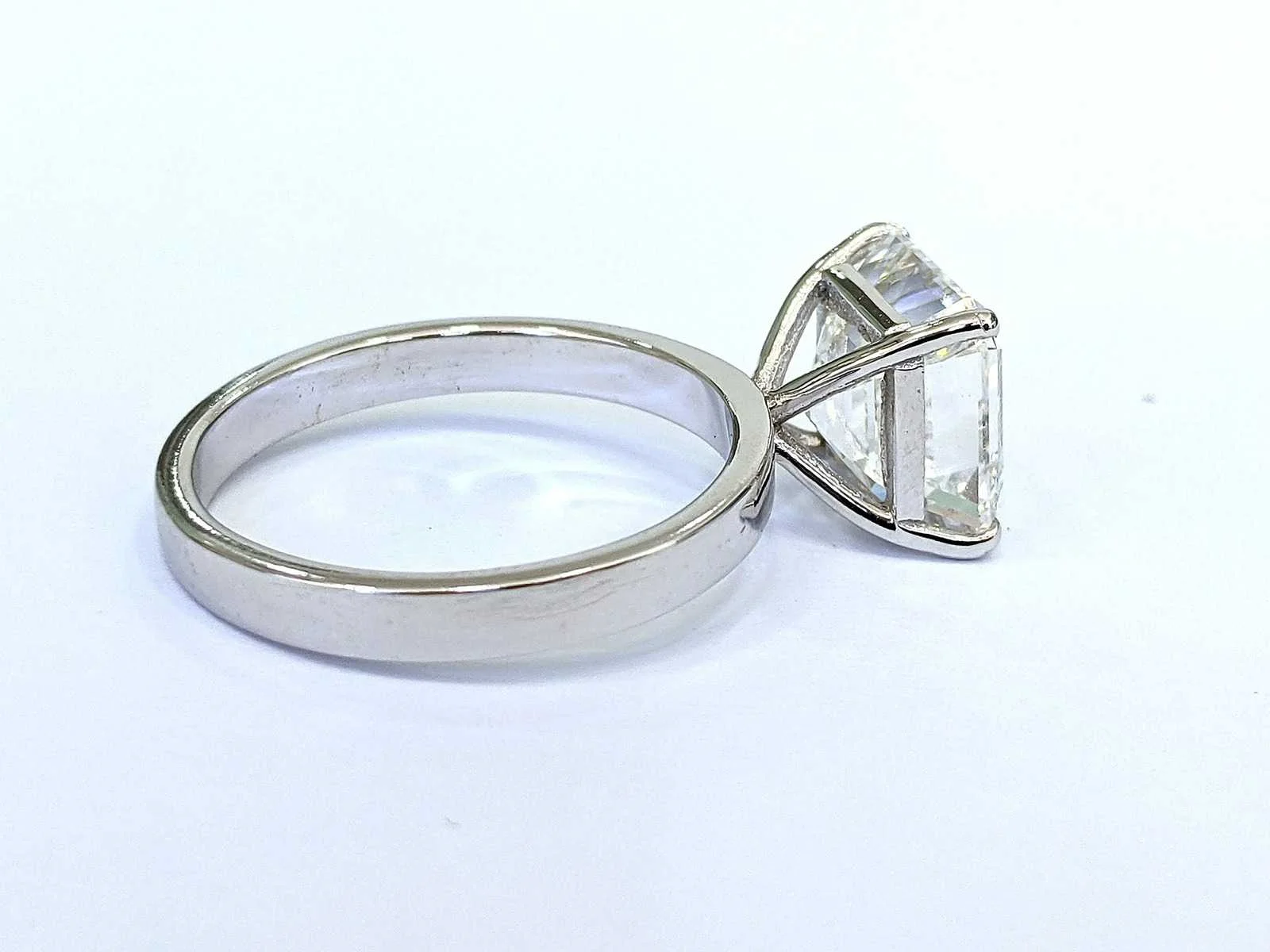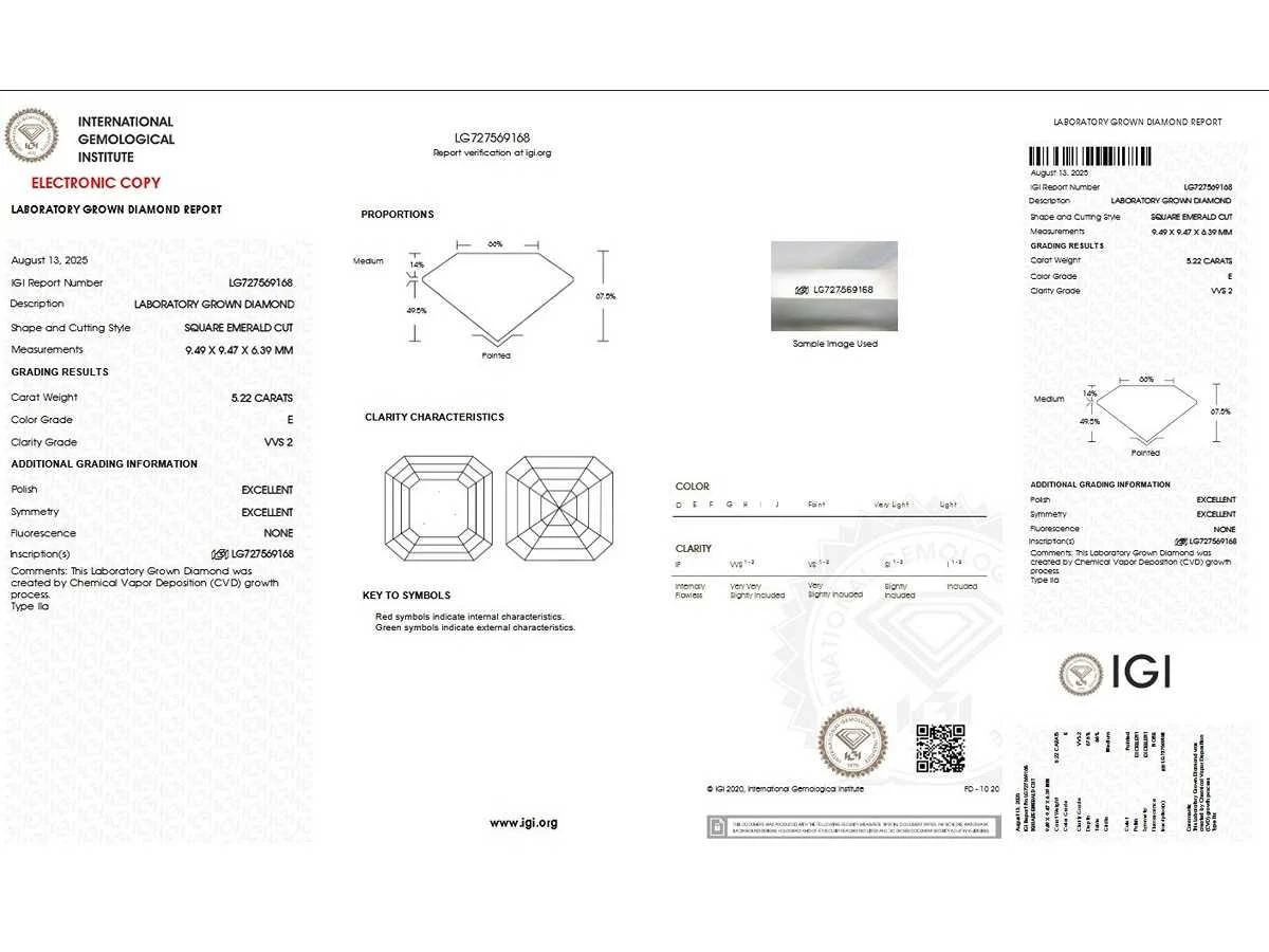 Vorm: Vierkante smaragd Carat: 5,22 Kleur: E Helderheid: VVS2 Ringmaat: 56 (EU) / 16 (IT) / 7 ½ (VS) Bezichtiging op afspraak Materiaal: Witgoud Ringmaat : 56 Certificaat: Ja Lage schatting: 11600€