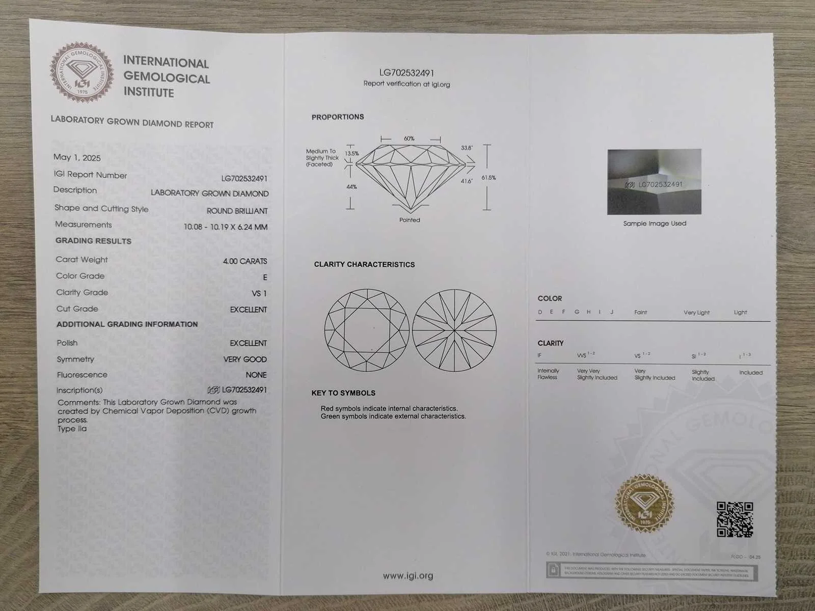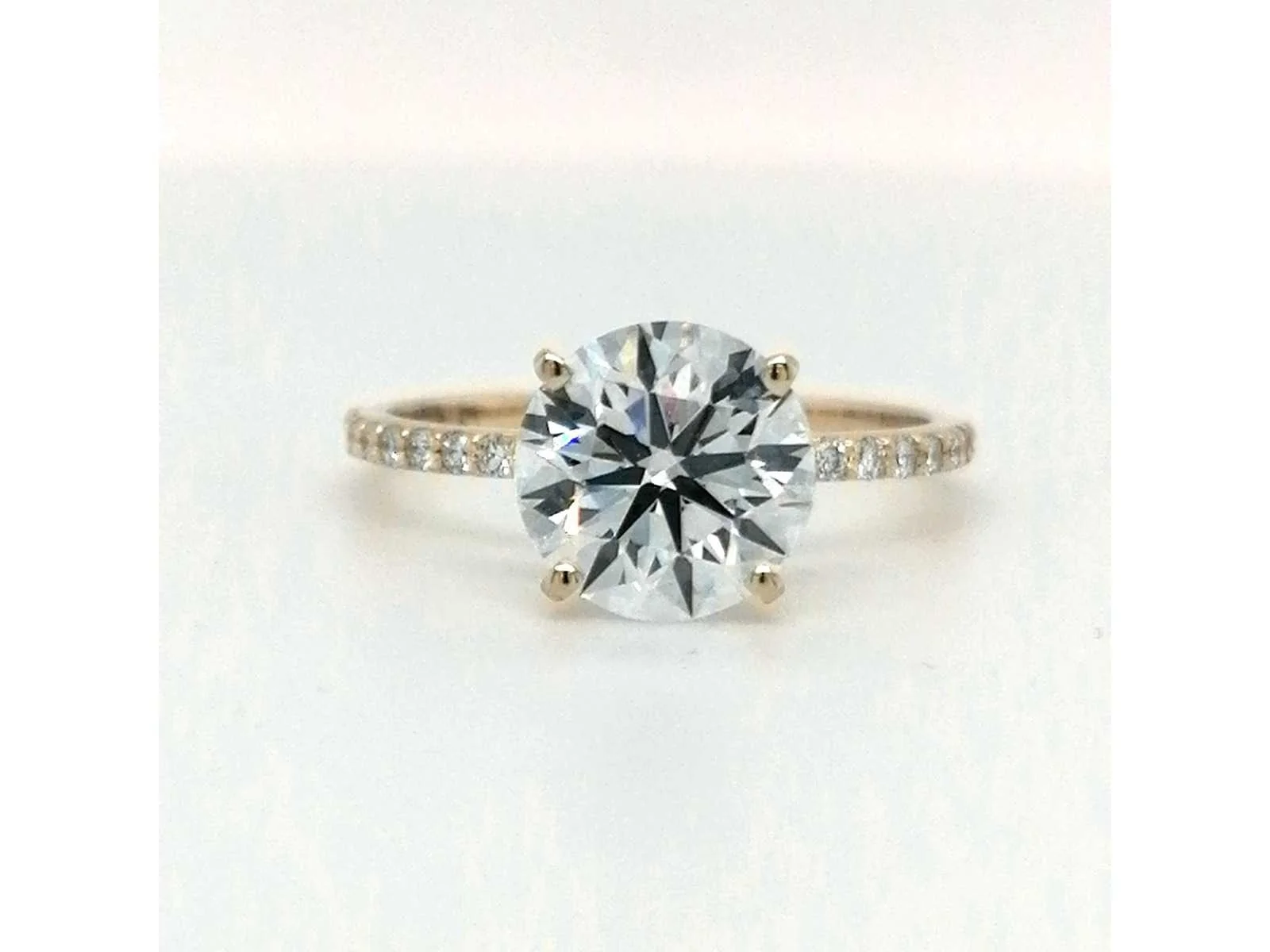 Rapportnummer IGI: LG702532491 Vorm: rond Gewicht: 4,0 ct Kleur: E Duidelijkheid: VS1 Pools: Uitstekend Symmetrie: Uitstekend Fluorescentie: Geen Bijstenen: 20 stuks ronde schitterende diamanten van totaal 0,24 ct Geel goud 14 K Met IGI-certificaat Bezichtiging op afspraak. Materiaal: geel goud Ringmaat : 55 Certificaat: Ja Lage schatting: 7000€