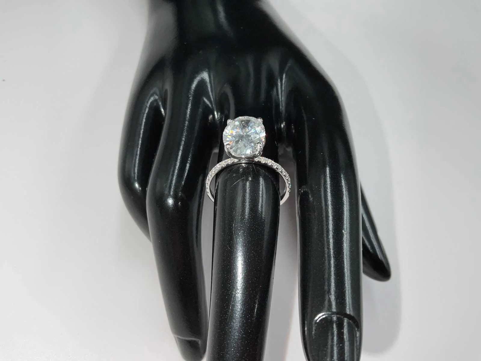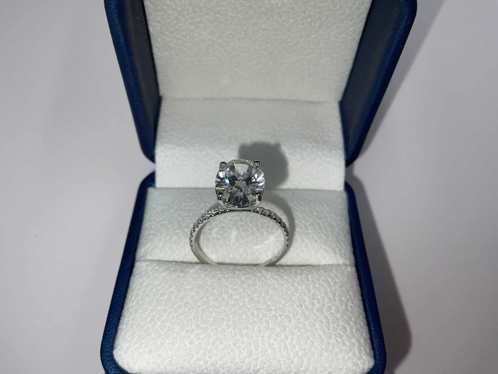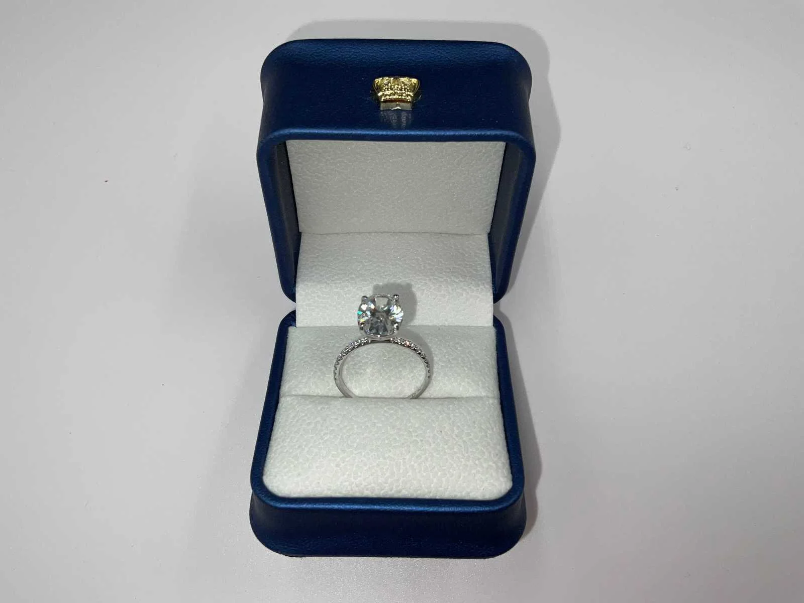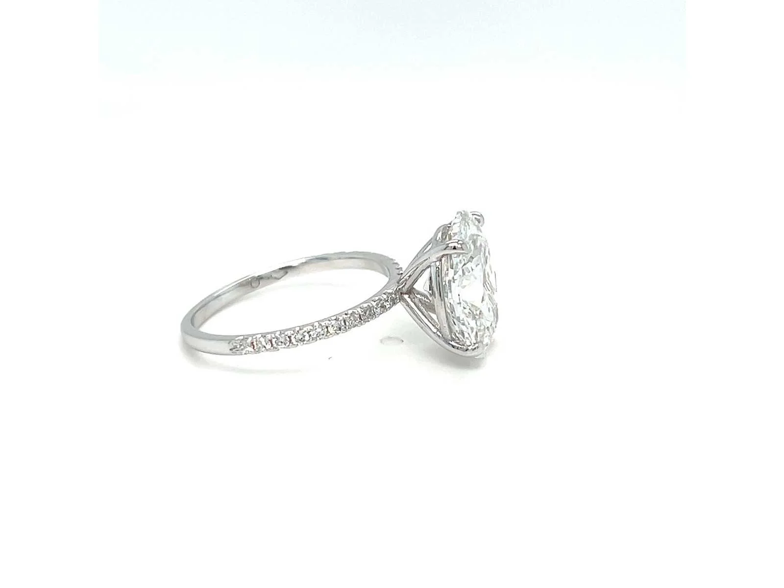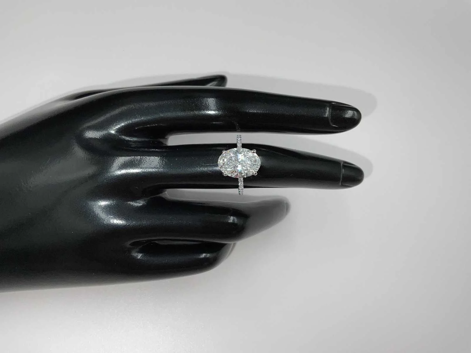 Vorm: ovaal Gewicht: 4,02 CT Kleur: D Helderheid: VS2 Symmetrie: uitstekend Fluorescentie: geen Zijstenen: 20 stuks, rond 0,17 ct Bezichtiging op afspraak. Materiaal: Witgoud Ringmaat : 54 Certificaat: Ja Lage schatting: 7400€