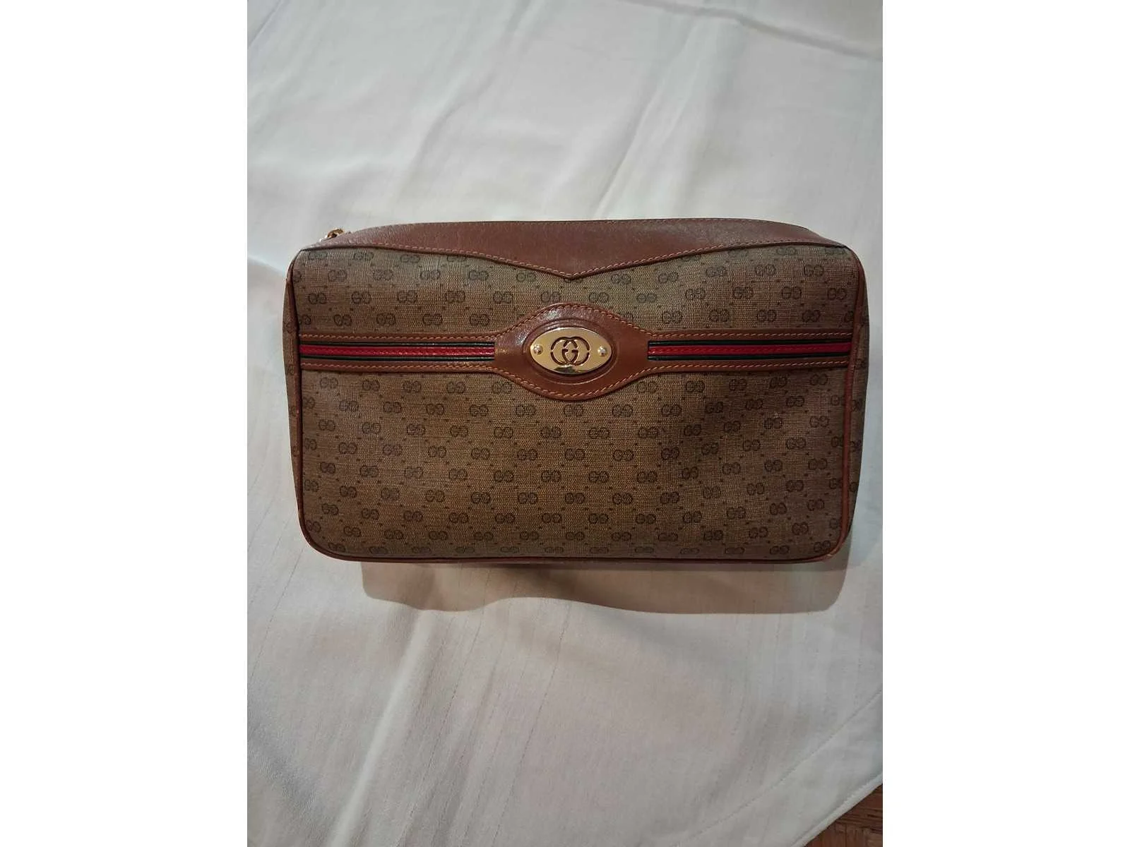 Monogram opdruk Bezichtiging op afspraak Merk: Gucci Fabrikant: Gucci Materiaal: leer Lengte: 16cm Breedte: 24cm