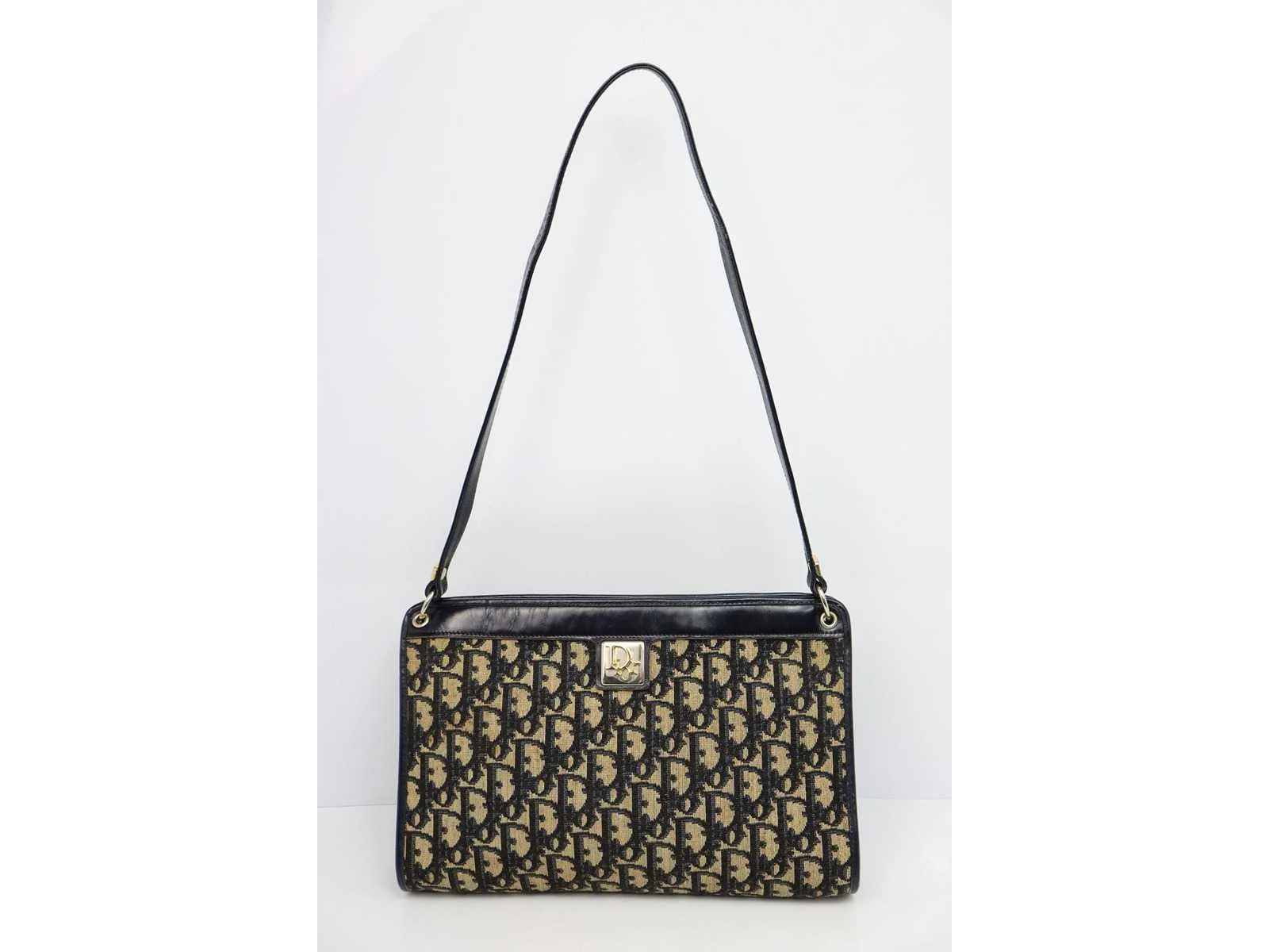 Christian Dior Dior Schoudertas Trotter All-over Patroon Schoudertas CD Metalen Fitting Leer Canvas Donker Marineblauw Beige Zwart Formeel Lot 87520667 VC/A240406-233-6 Bezichtiging op afspraak Merk: Christian Dior Model: schoudertas Lengte: 20cm Breedte: 29cm