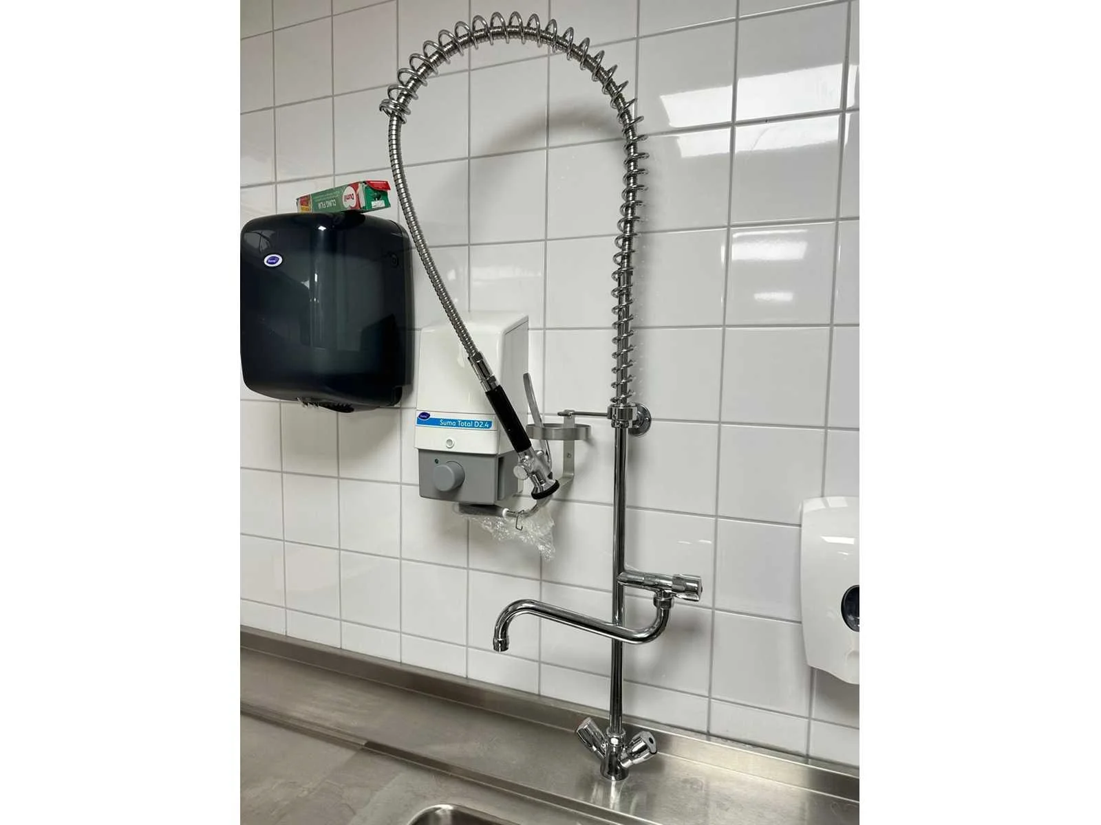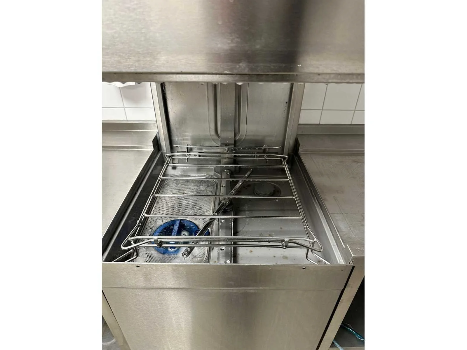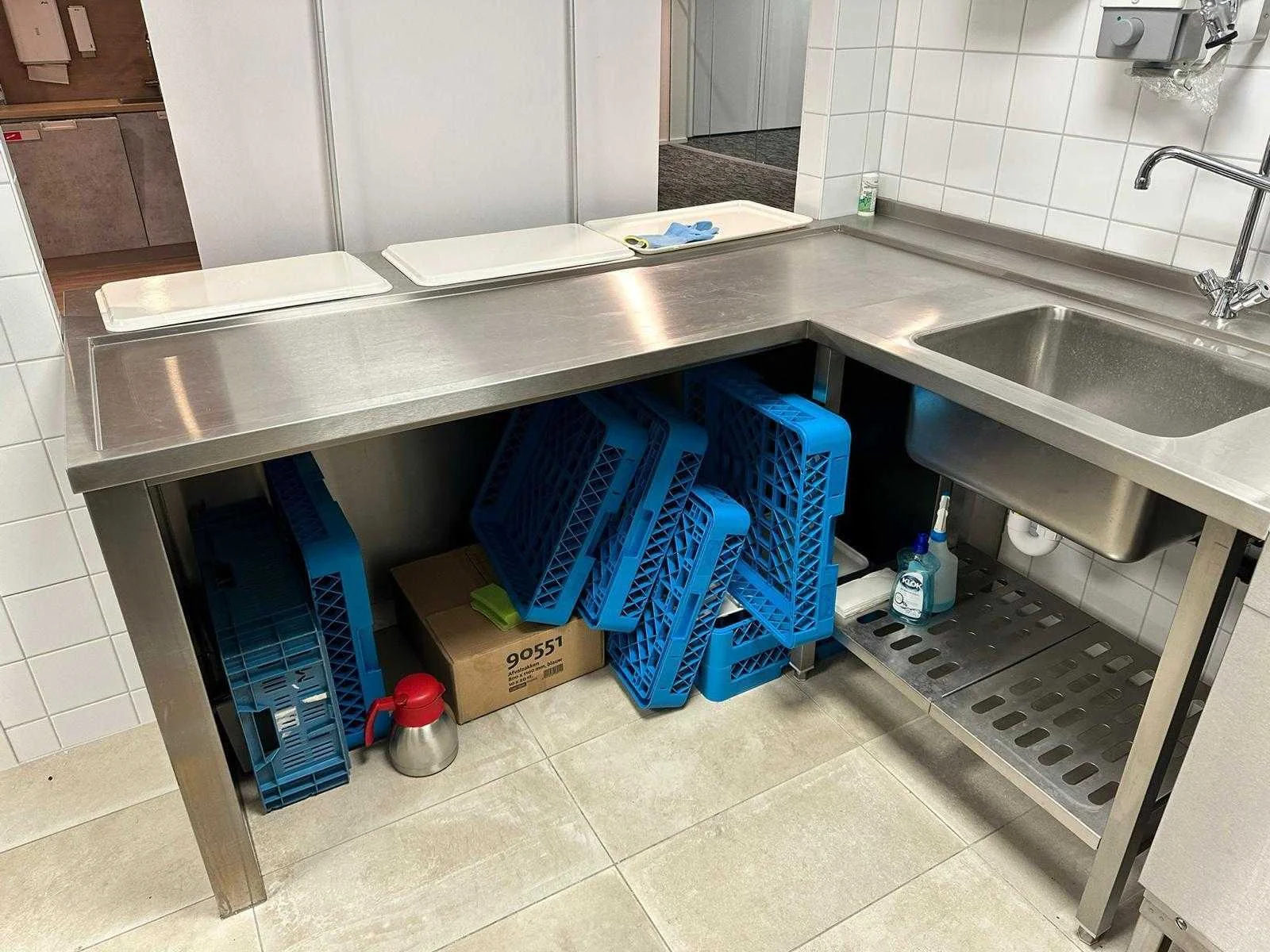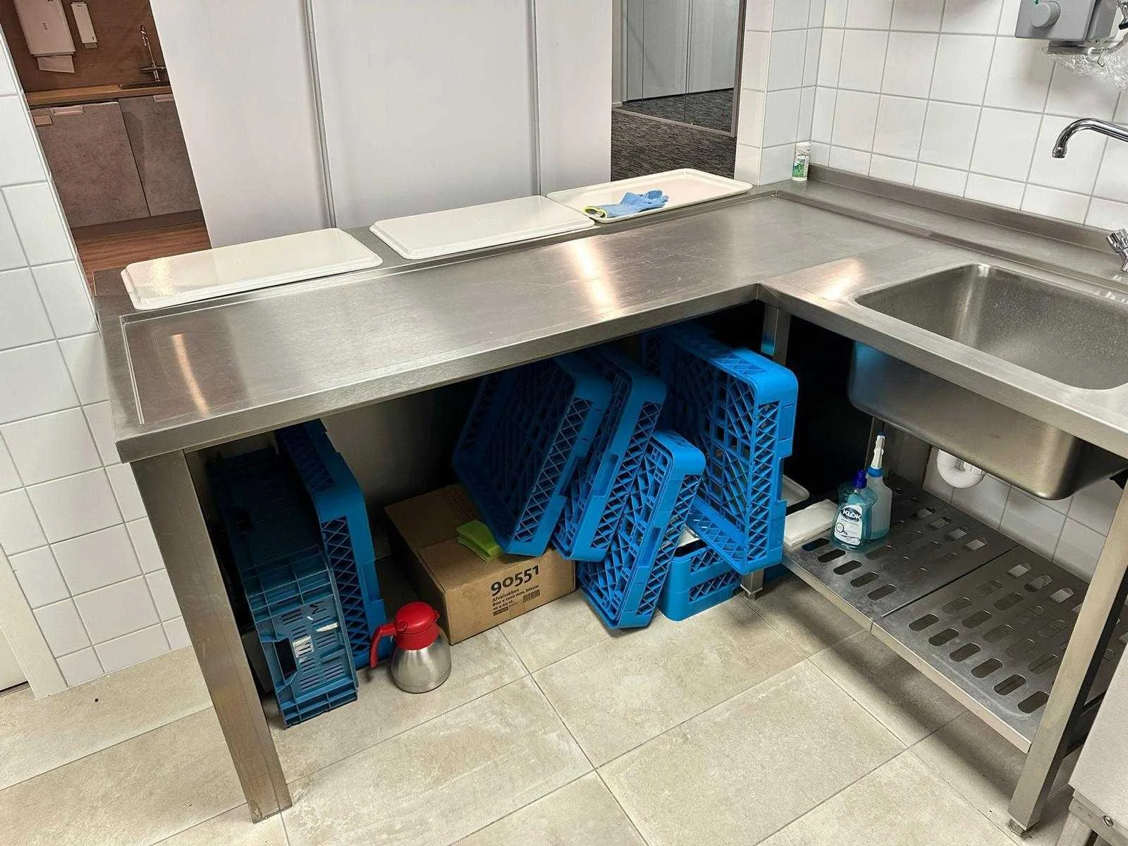 Aanvoertafel met kraan hoekmodel 150x120x75cm, afvoertafel 120x75cm. Merk: Hobart Model: AMXS-10A Spanning: 400V Materiaal: RVS