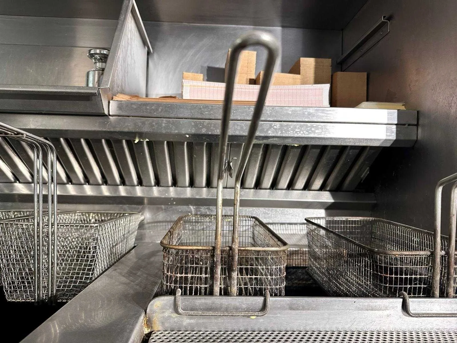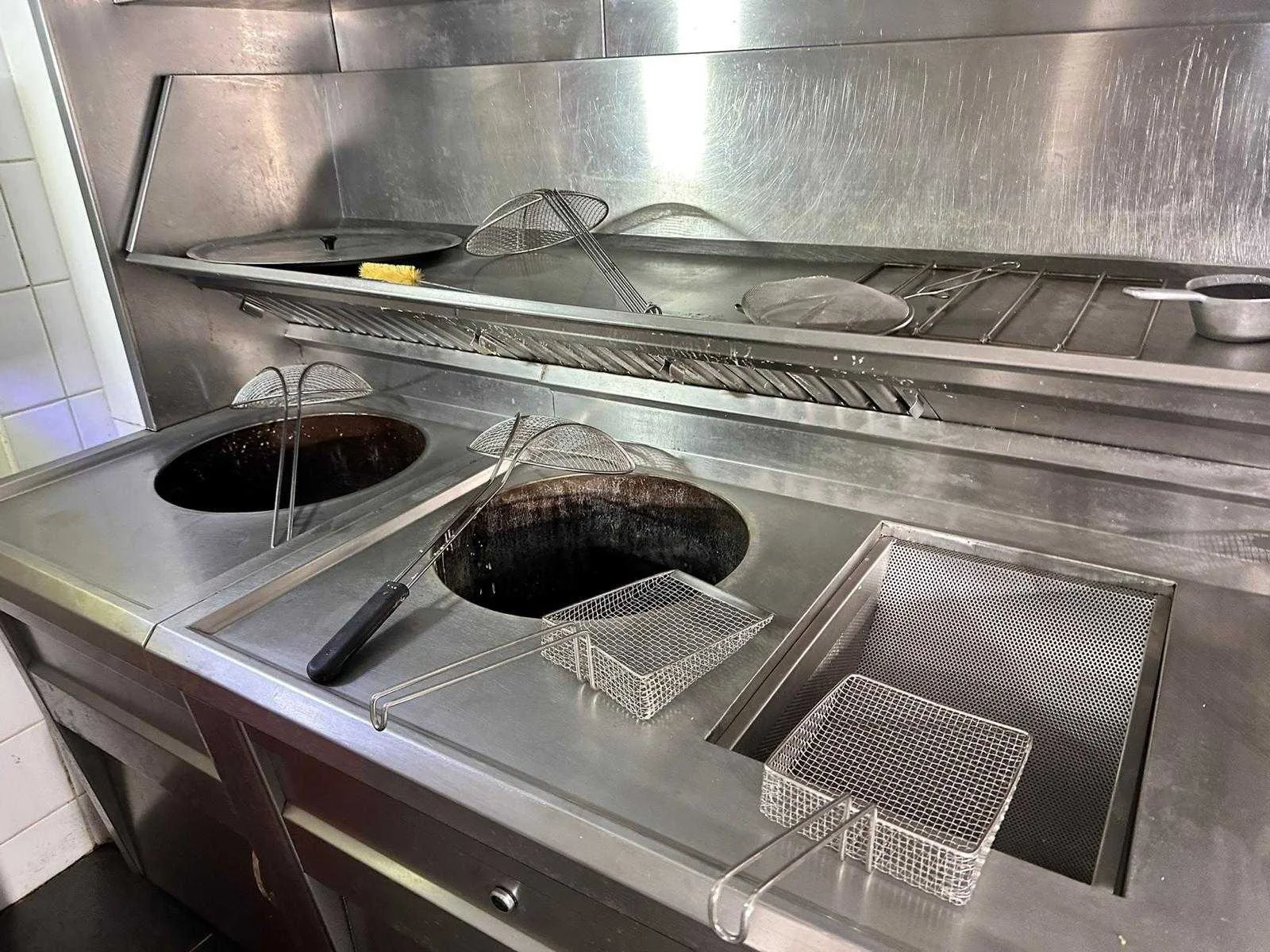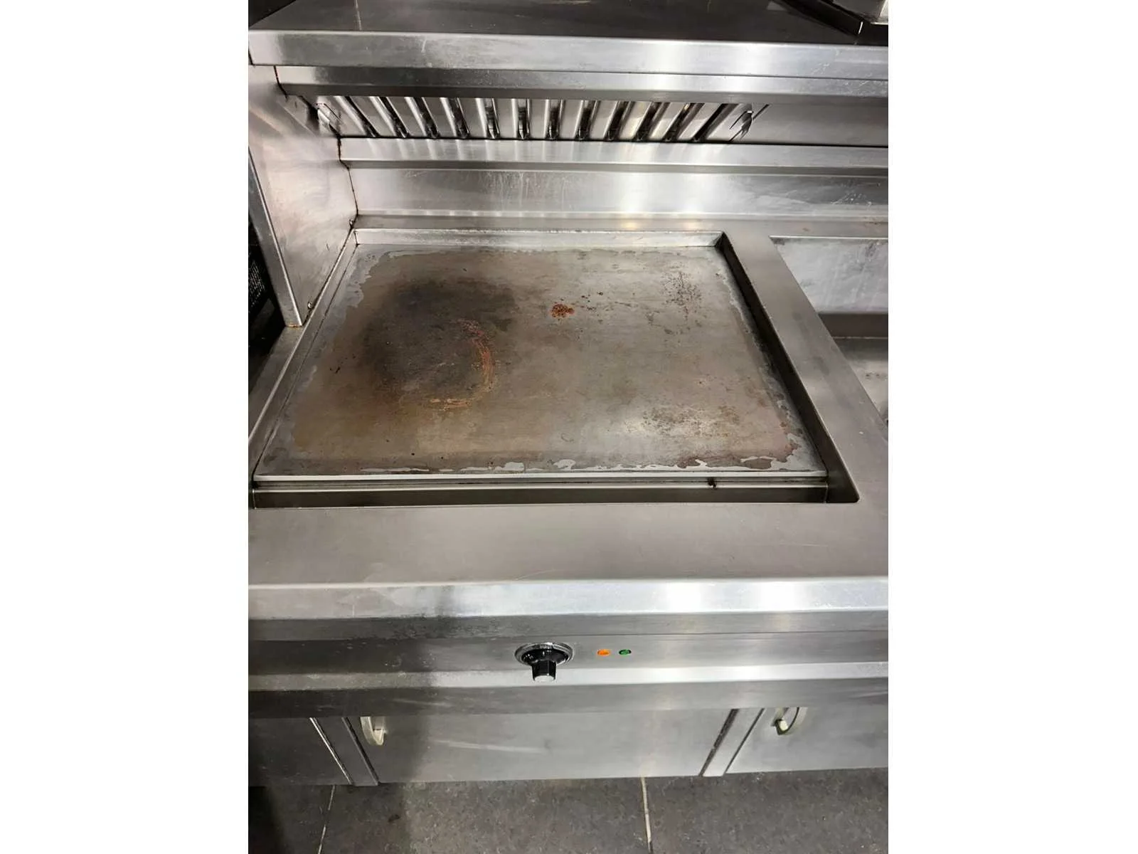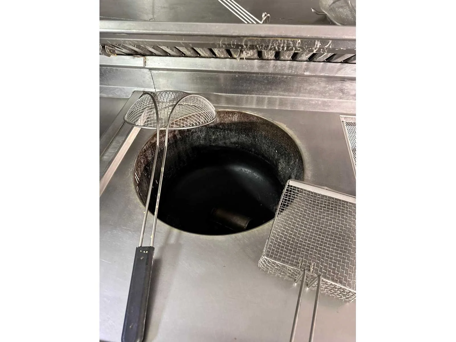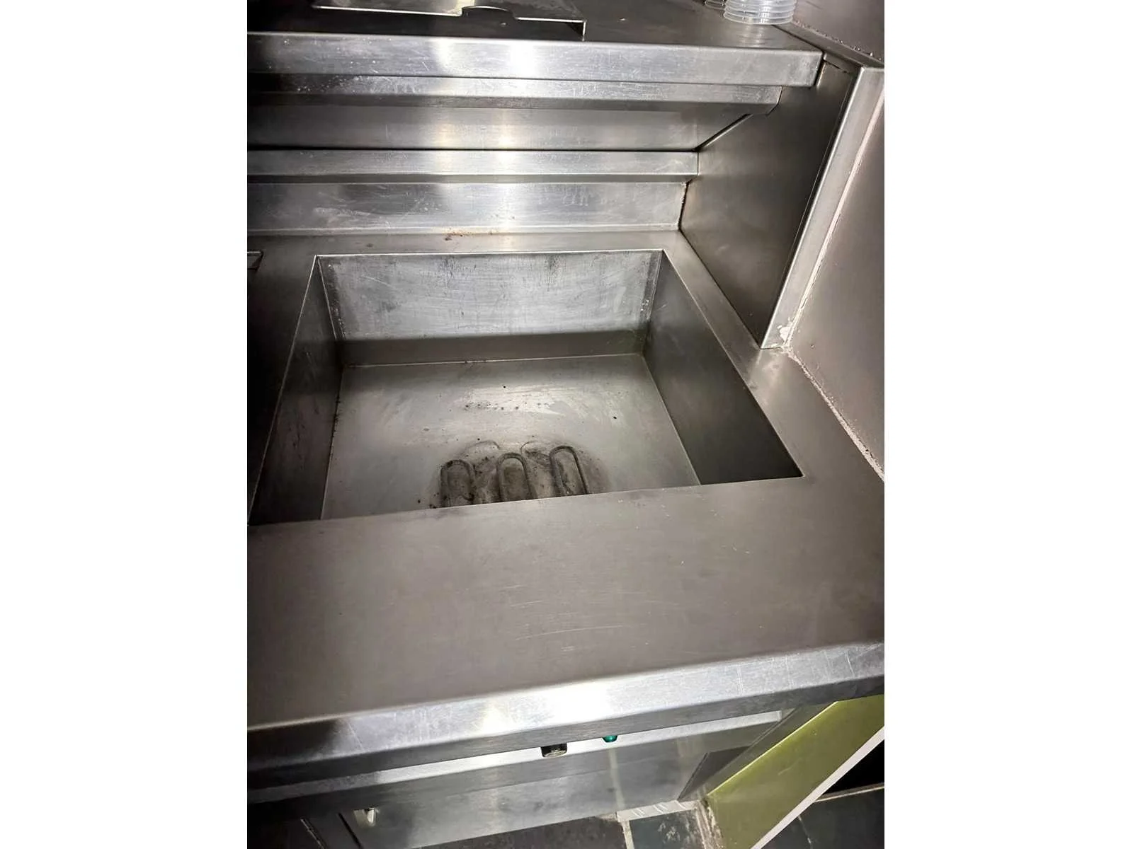 Complete snack bakwand, voorzien van 2x ronde frituurpan 44cm, 4x snackmand, bakplaat, au bain Marie. Merk: Florigo Totale afmeting Breedte: 4000mm Rvs: true