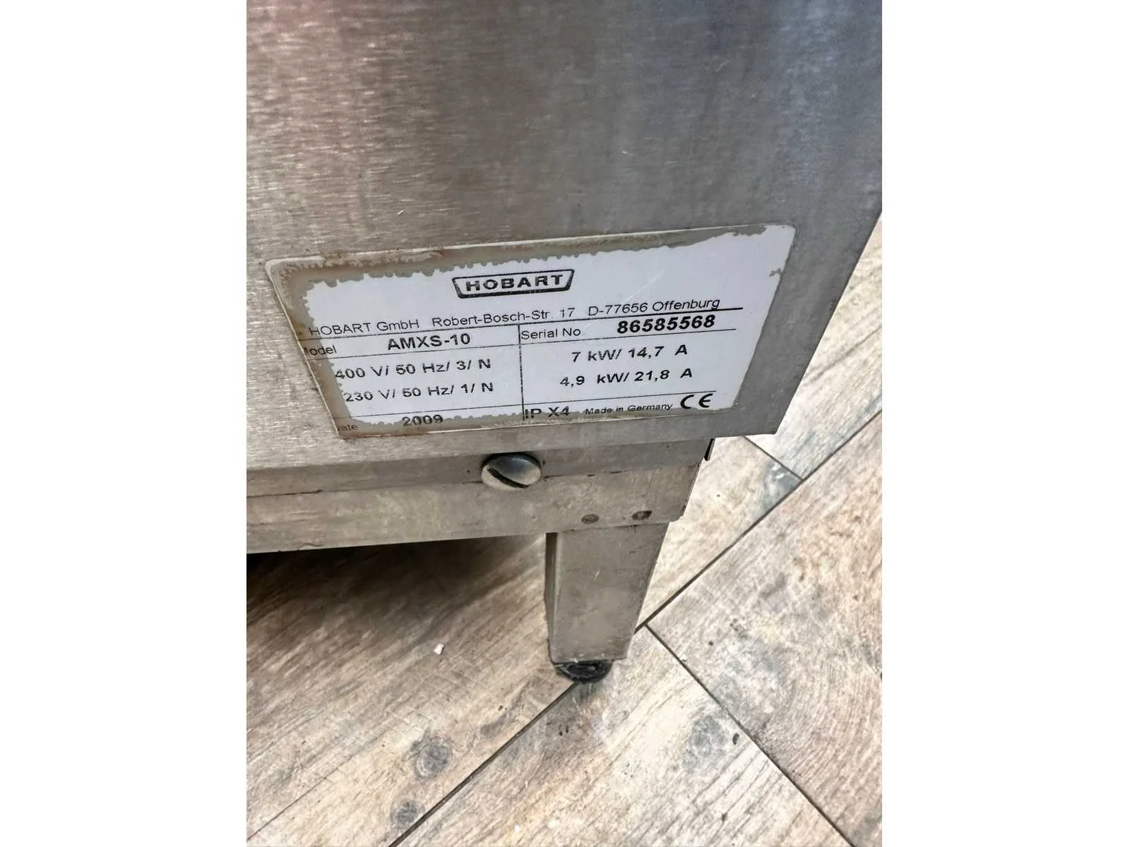 Merk: Hobart Type: AMXS-10 Serienummer: 86585568 Rvs: true Doorschuifmodel: true Vermogen: 7kW Aansluiting: 400V