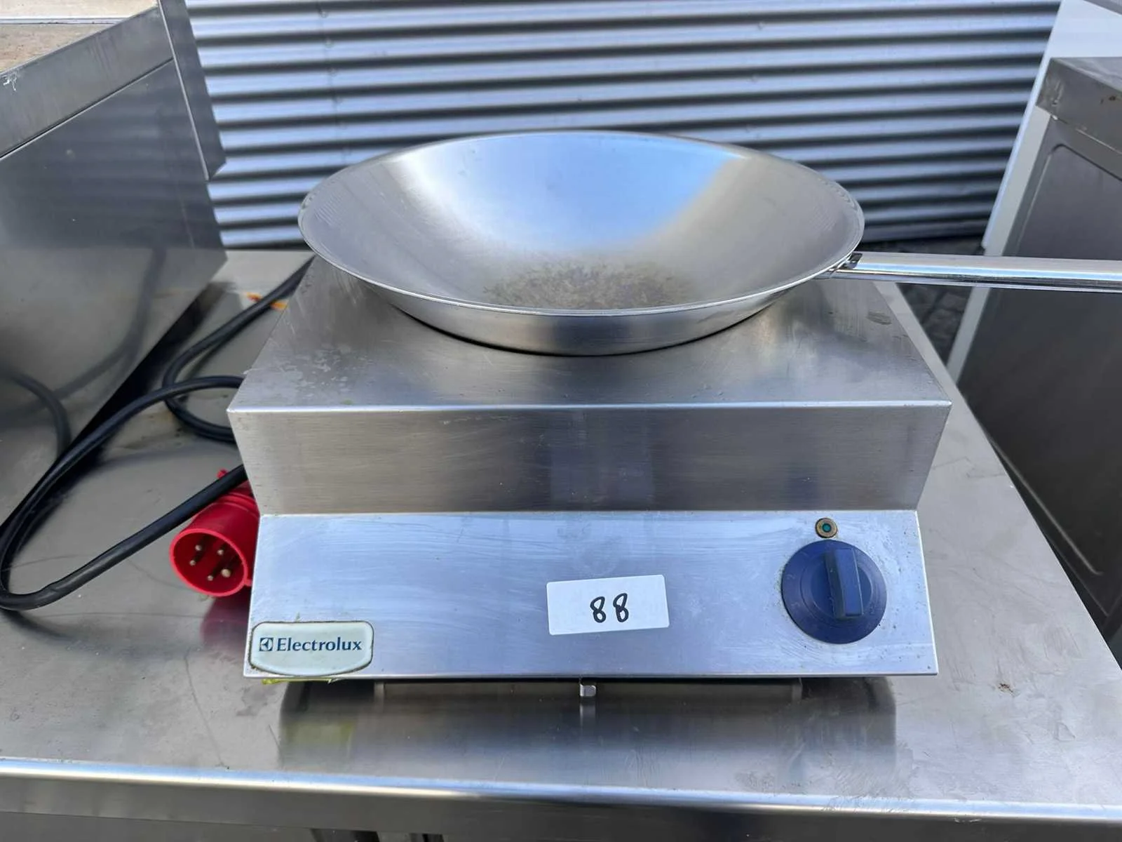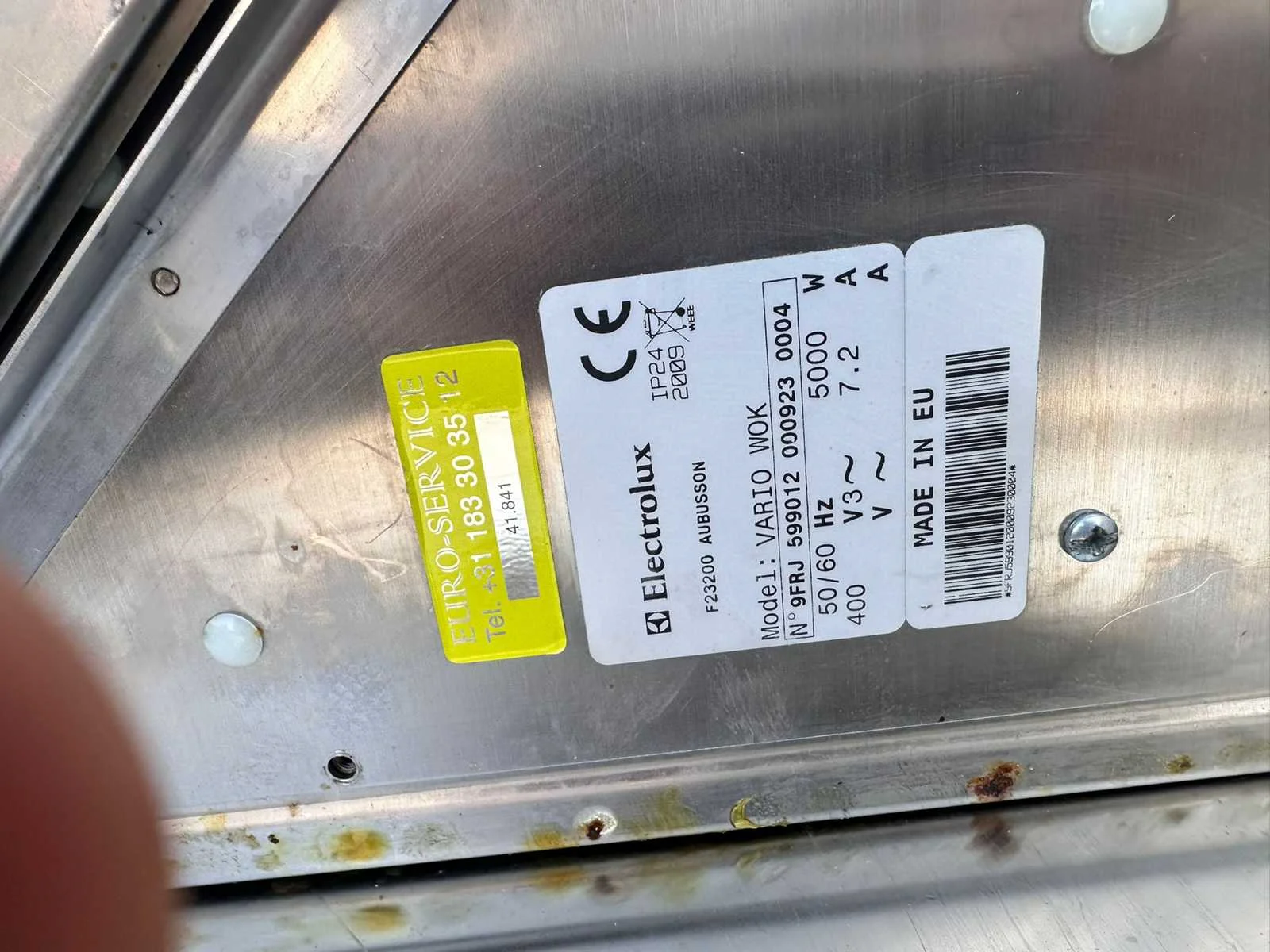 Met pan Merk: Electrolux Type: Vario Wok Bouwjaar: 2009 Materiaal: RVS Aansluiting: 380