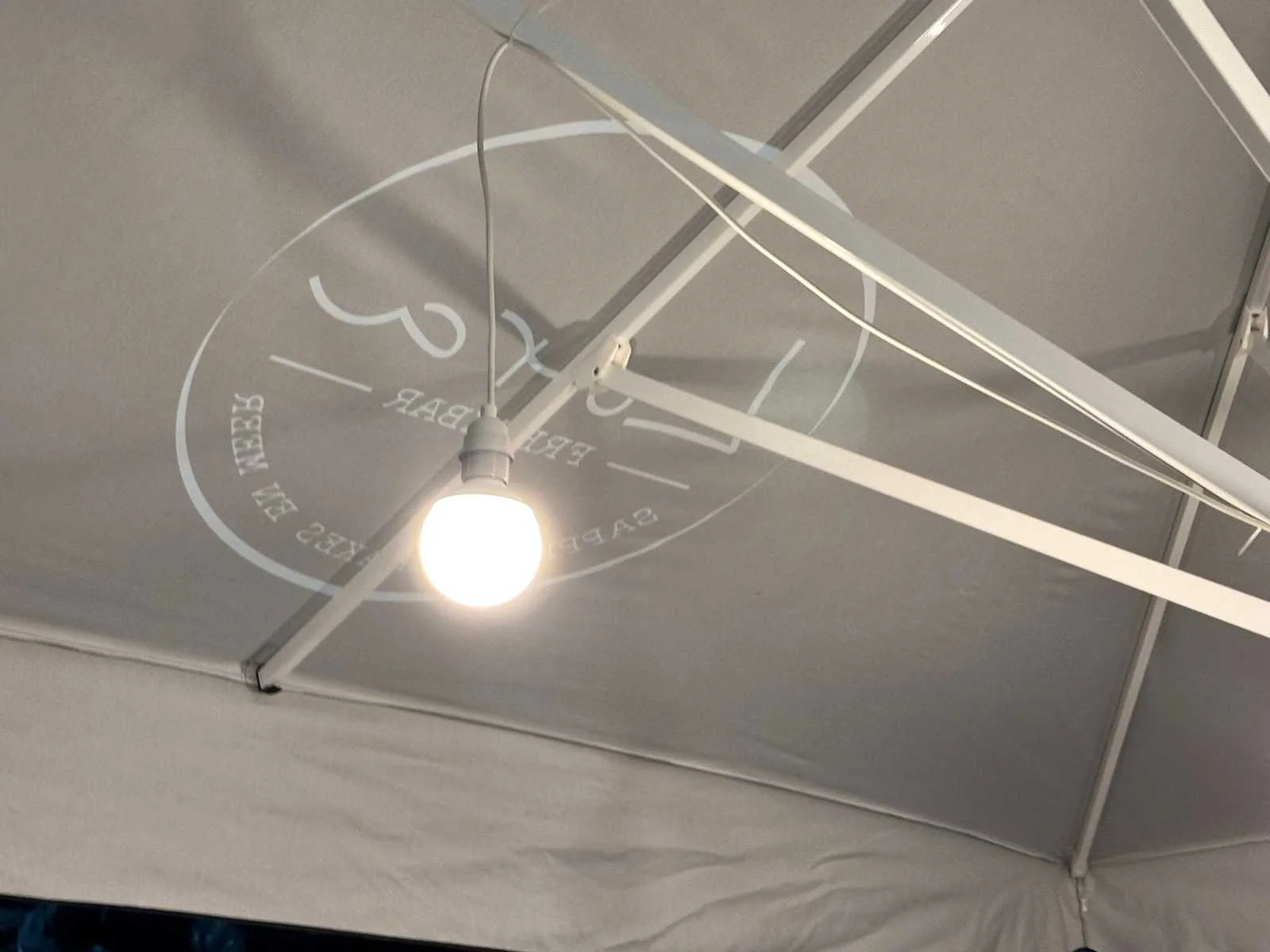Met verlichting en voet. Lengte: 400cm Breedte: 500cm