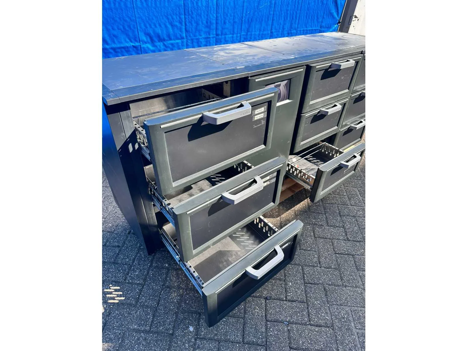 Voorzien van 9 lades. Merk: Gamko Type: Euroflex Totale afmeting L: 2110mm Totale afmeting Breedte: 550mm Totale afmeting Hoogte: 850mm