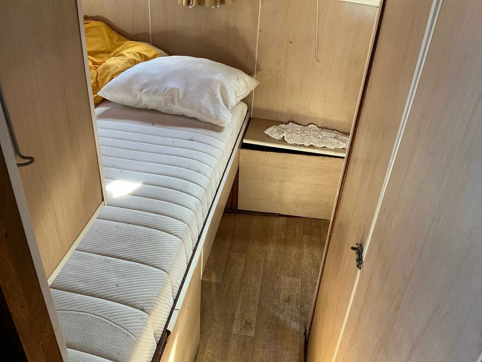 Voorzien van davids, zwemplateau. zwemtrap, zonnepanelen, Paragon keerkoppeling, keuken met kookplaat, koelkast, spoelbak, 2 zitjes, Merk: Valk Lengte: 10.5m Breedte: 3.4m Rompmateriaal: Staal Aantal hutten: 1 Aantal slaapplaatsen: 4 Aantal motoren: 1 Merk motor: Perkins Vermogen (pk): 50hp Aantal cilinders: 4 Brandstof: Diesel Navigatieverlichting: true Navigatie apparatuur: true Toilet: true Marifoon (vhf): true Type stuurinrichting: Hydraulische, binnen/buitenq Boegschroef: true